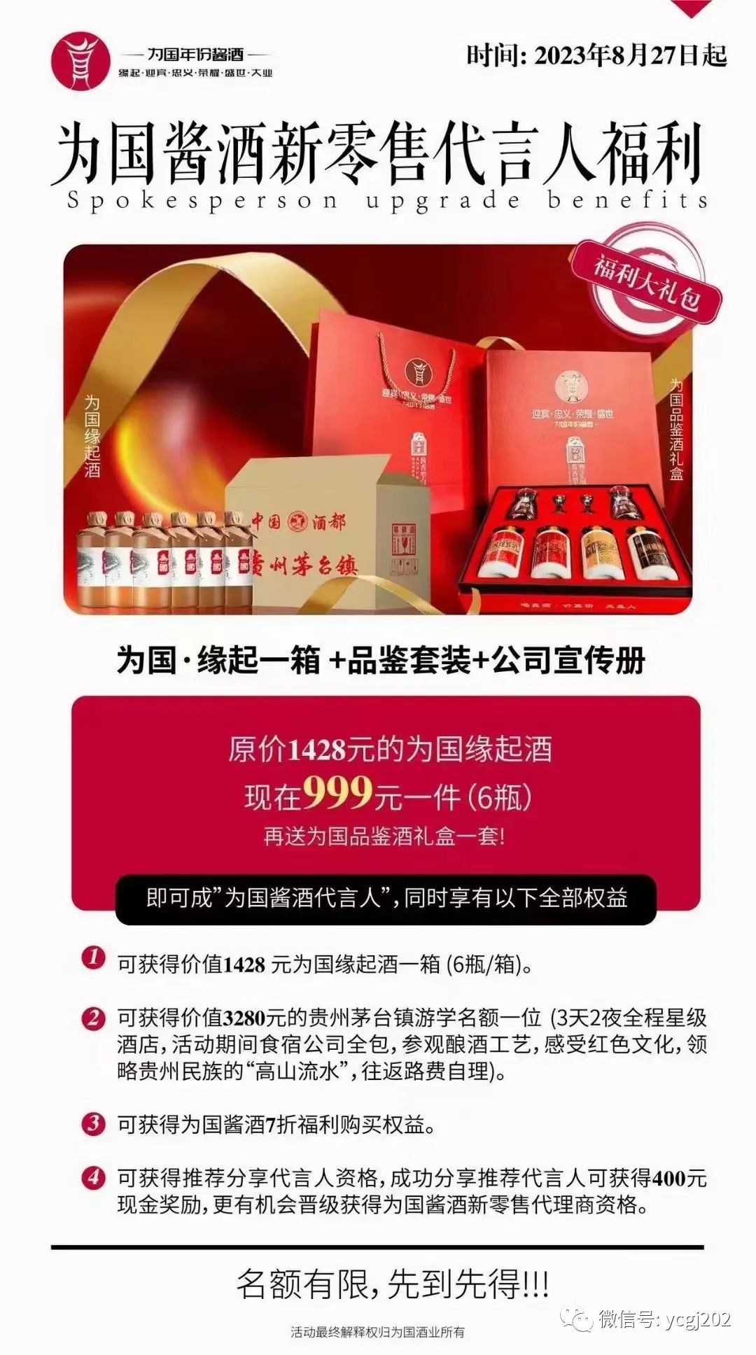 只需要花999元获得价值1428的为国缘起酒,同时能开启结缘为国之门!