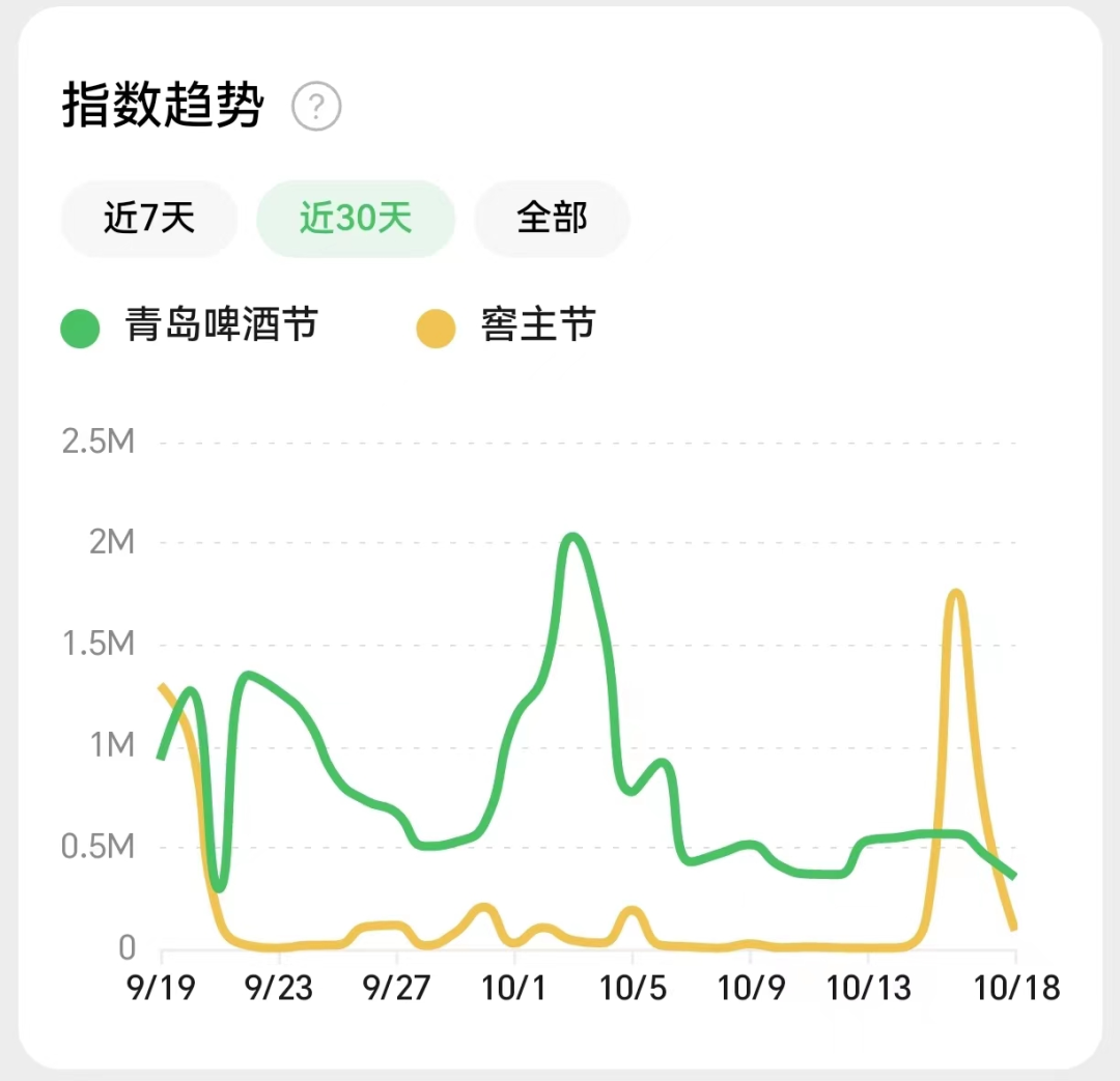 但不得不承认,在这场一路向C的文化活动浪潮中,除了茅台、泸州老窖等少数企业收获到更广泛酒类消费互动外(其中“窖主节”近30天微信指数与酒业顶流“青岛啤酒节”有来有回),更多企业的“C化”似乎是在这场C端化趋势下被动做出从众行为,披着用户思维的外衣行渠道促销之事(如卖酒送票)。四川省酒类流通协会副会长、百瑞祥国际贸易董事长廖昌学表示:“白酒品牌参与演唱会的实质,是为了助力动销。”