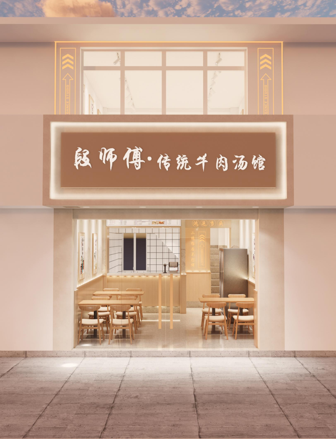 两侧挂画则表达了段师傅牛肉汤的正宗本味,逐步聚焦味蕾对美食的牵引,让段师傅牛肉汤的品牌文化融入空间,留住食客对于段师傅牛肉汤的文化记忆和认可。