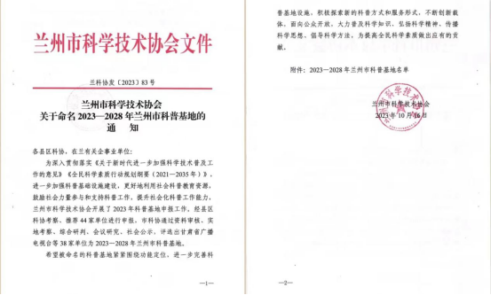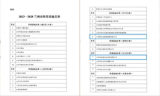 兰州农发集团子公司兰州农尚荟农业科技有限公司、兰州野生动物园管理有限公司成功获批2023-2028年兰州市科普基地