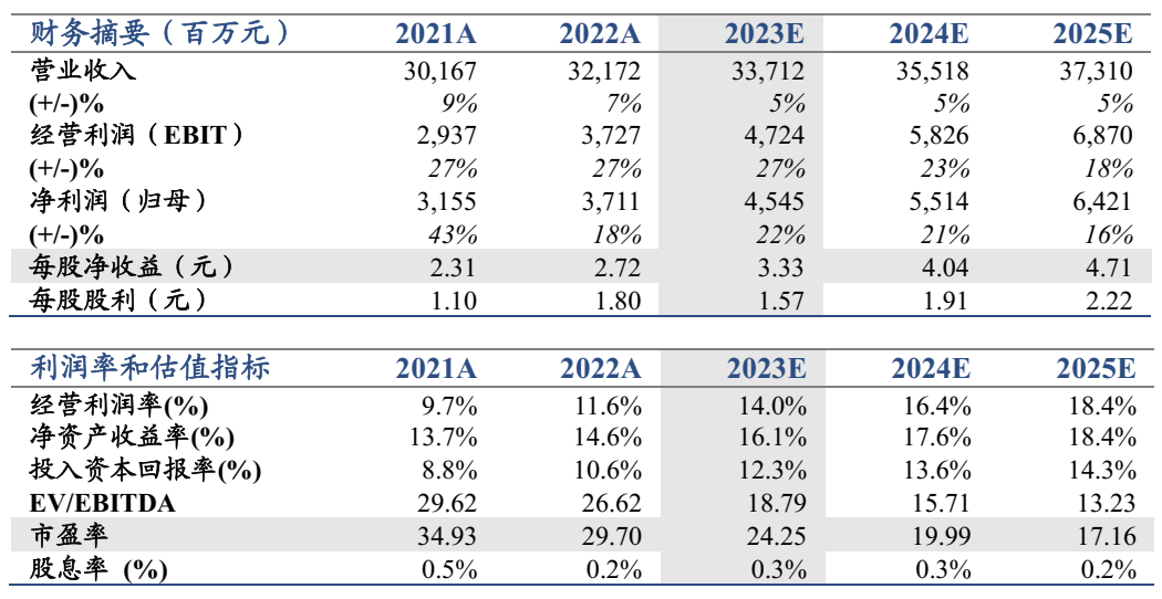 产品结构升级延续,高基数效应已反映:据渠道调研及测算,我们预计3Q23 销量下滑10%左右,高基数效应已充分反映。同时,我们预计3Q23销售单价中单位数提升,呈现高档占比持续提升的趋势。在白啤、经典、纯生三款大单品稳健增长及低档出清策略的驱动下,吨价有望持续提升,收入将保持稳健增长。