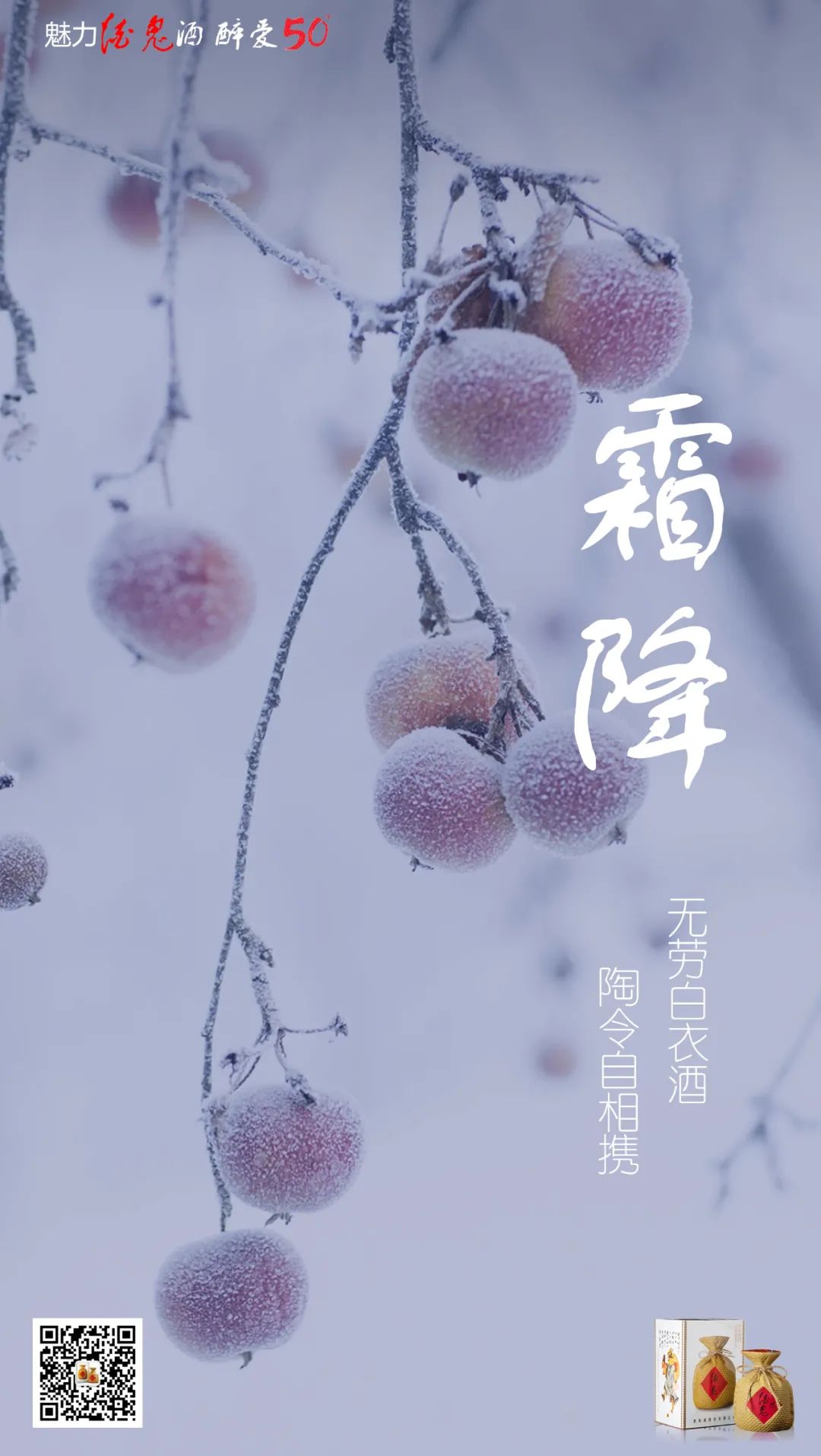 当然,霜降这一天,还可以适当喝点50度酒鬼酒,能够活血祛寒、通经活络、预防感冒。秋叶萧萧,林木疏疏,邀二三知己,置四五小菜,临窗而饮,浅斟慢酌,也是一大妙境。