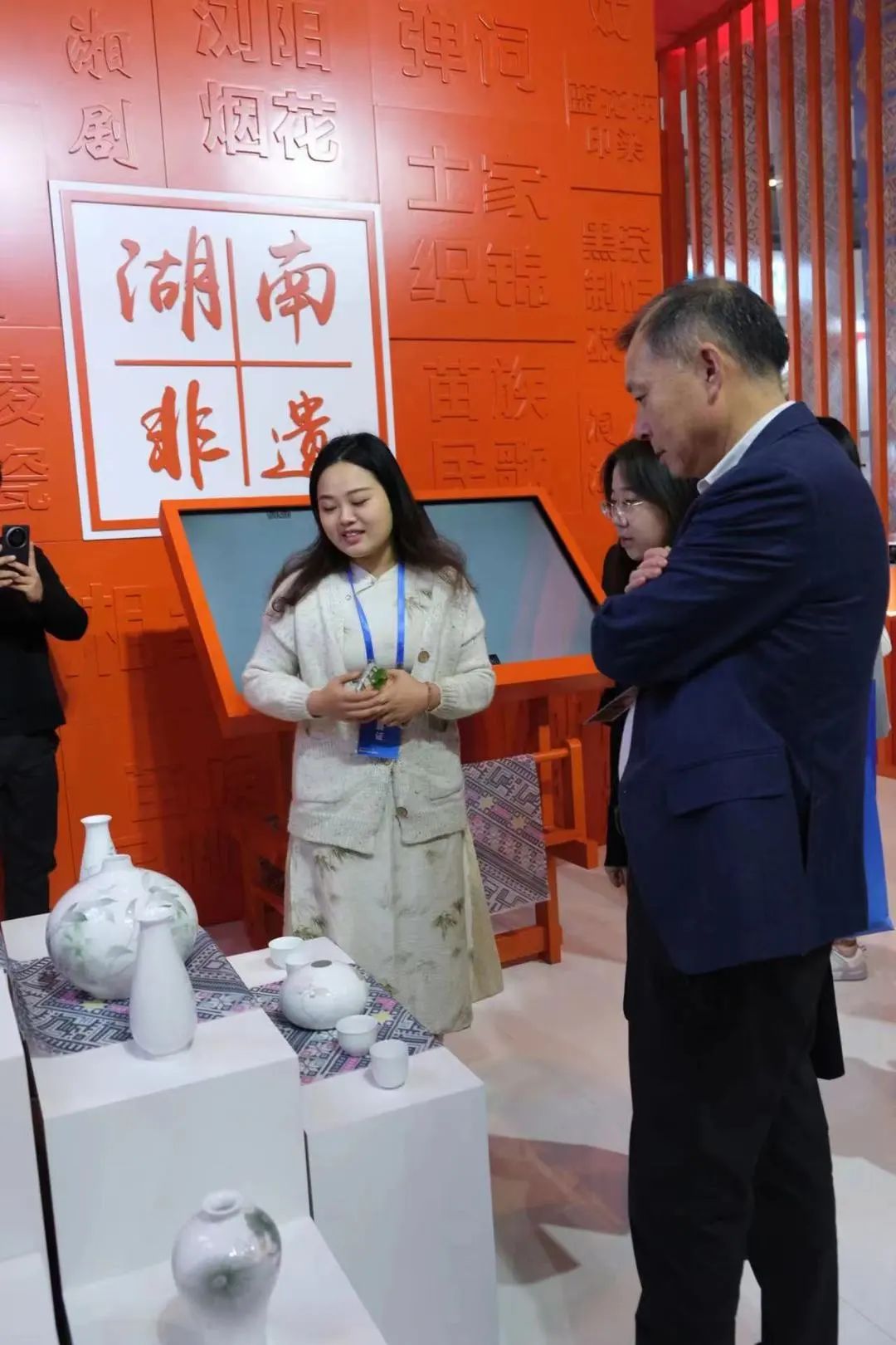 在此次博览会中,醴陵陈扬龙窑的《碧玲珑》《小神仙光》等醴陵釉下五彩瓷作品集中亮相,吸引了众多观众驻足观赏。参展作品充分展现了湖湘文化名片“醴陵釉下五彩瓷”非遗传承创新的匠心成果,呈现湖湘文化创造性转化、创新性发展的独特魅力。