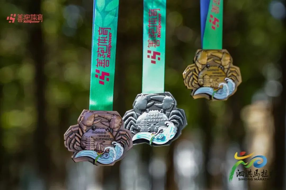 此外,奖牌也以生动可爱的螃蟹为设计形象,背面还有铭牌设计,跑友可雕刻自己姓名并嵌入完赛奖牌,拥有专属的定制奖牌。