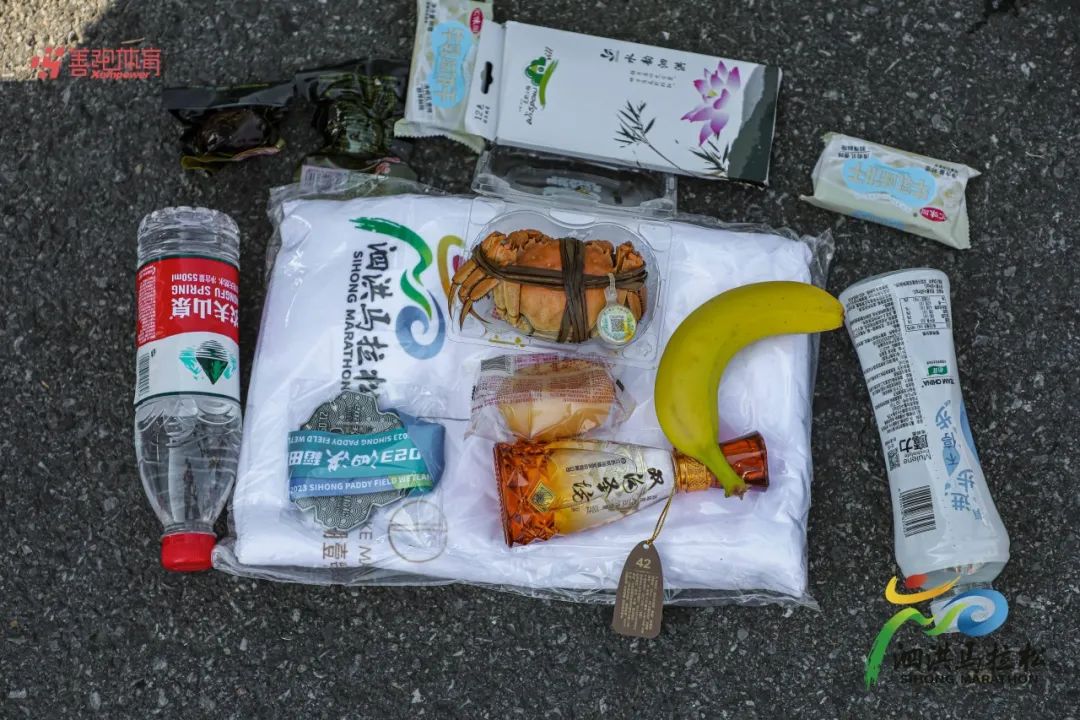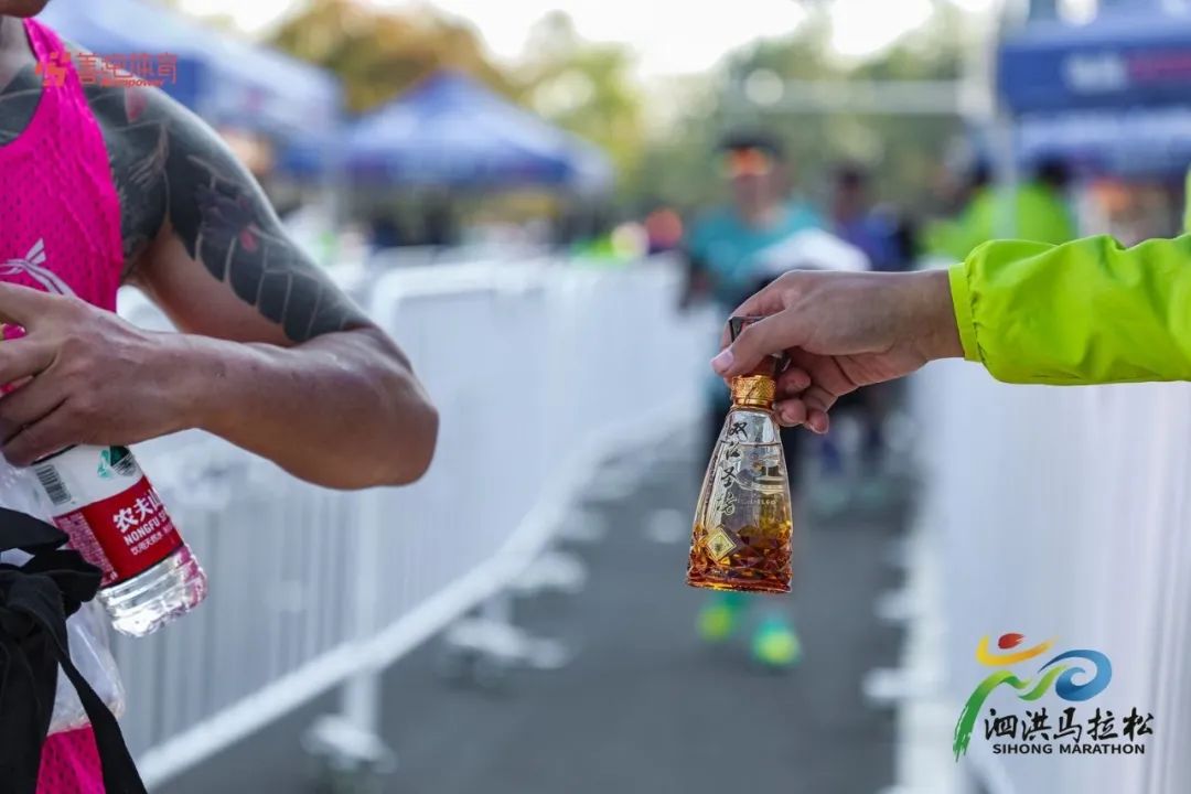 因此,组委会在每位选手的完赛包中,除了配备常规完赛物资,还特别放了1小瓶作为完赛礼遇,让跑者们品味到双沟大曲美酒。