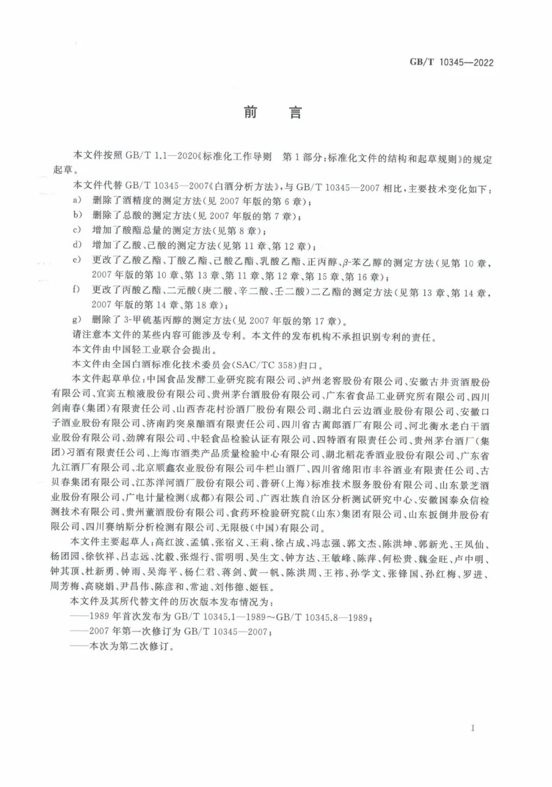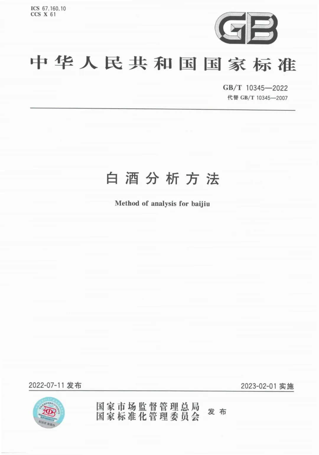 GB/T 10345-2022《白酒分析方法》将于2023年2月1日正式实施,新标准代替GB/T 10345-2007《白酒分析方法》,与GB/T 10345-2007相比,主要技术变化如下: