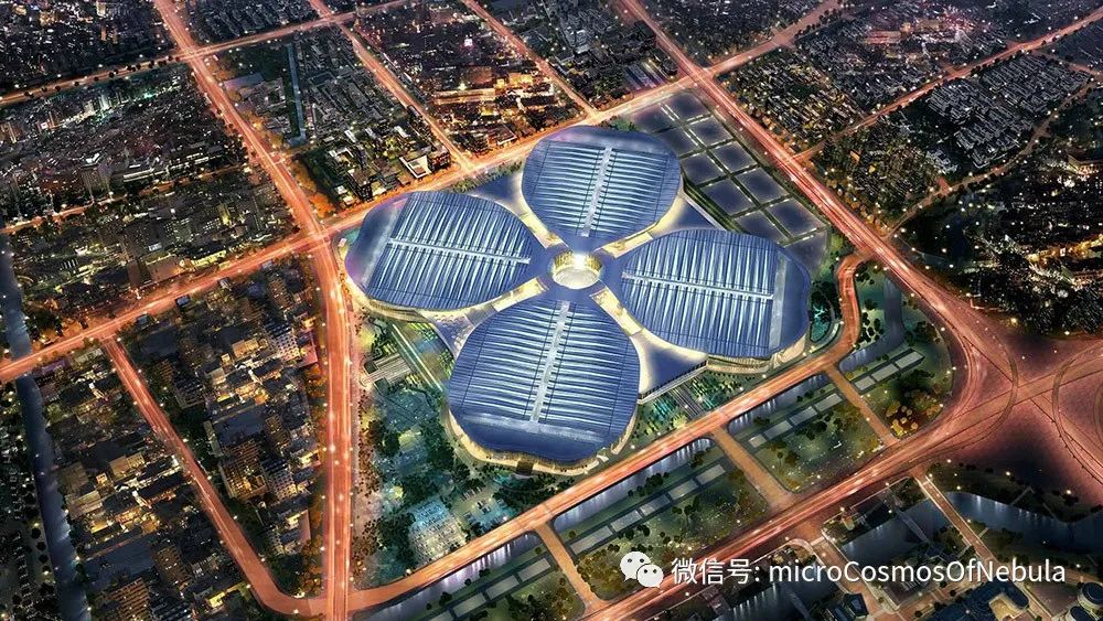 “四叶草”—国家会展中心(上海)是由商务部和上海市人民政府合作共建的超大型会展综合体项目。国家会展中心总建筑面积超过150万平方米,包括展馆、商业广场、办公楼和一家五星级酒店,集展览、会议、活动、商业、办公、酒店等多种业态为一体,是世界上最大的建筑单体和会展综合体。主体建筑以伸展柔美的四叶幸运草为造型,是上海市的标志性建筑之一。