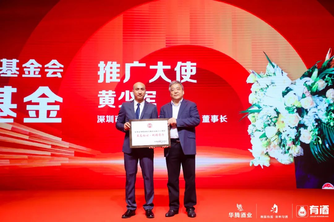 深圳市酒类行业协会秘书长杨克建先生在此次庆典上致词,并为黄少军董事长颁发了“公益推广大使”荣誉牌,对华腾酒业在酒类行业及公益中做出的贡献给予了极高的赞扬!