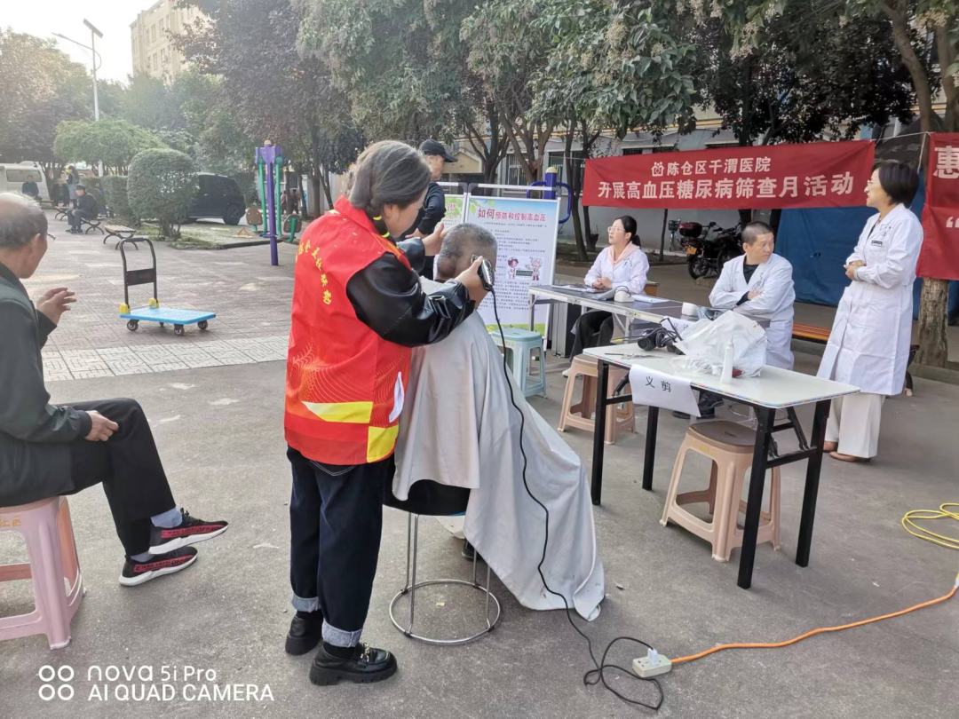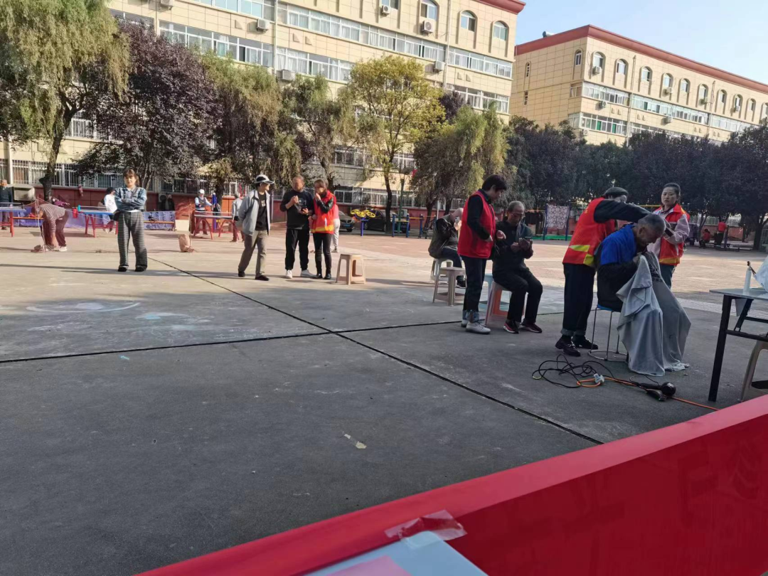 活动现场气氛热烈,此次活动设有:义诊、义剪、政策宣讲三个服务台。义诊台专门为居民提供测量血压、健康咨询等健康指导;义剪台由社区理发志愿者为老人们剪发,焕发精神面貌;政策宣讲台由社区志愿者们现场解答居民关于养老保险认证、居民医保缴纳、“九率一度”平安创建宣传、垃圾分类指导等政策宣讲,把党的惠民政策送到群众身边,让居民少跑路,打通服务群众“最后一米”。