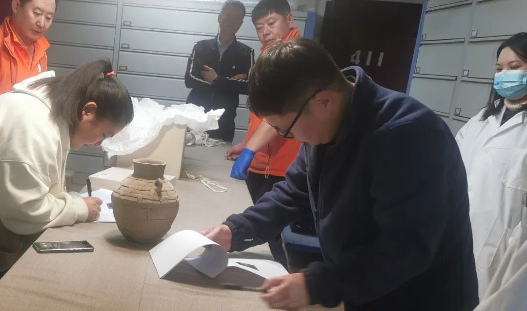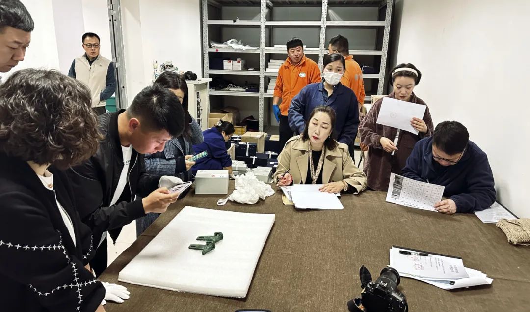 10月20日,通辽市博物馆藏品部与内蒙古考古研究院和文物运输公司对文物详细核对、记录,文物运输公司对文物进行包装,安保中心负责现场文物安全。