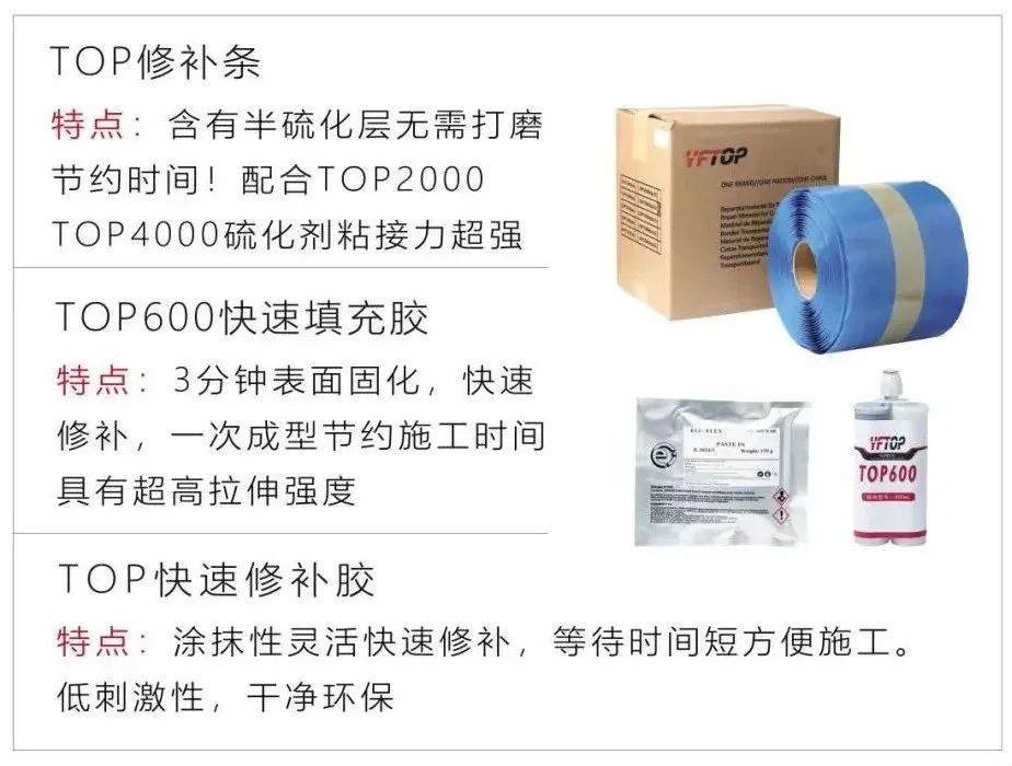 我们自主研发的橡胶半硫化粘接层,通过交联硫化反应实现强力粘接,CN层无需打磨,粘接力达到国际顶端水平,我们的硫化接头胶性能超出国家标准的1.4倍左右,并具有超长质保期24个月。