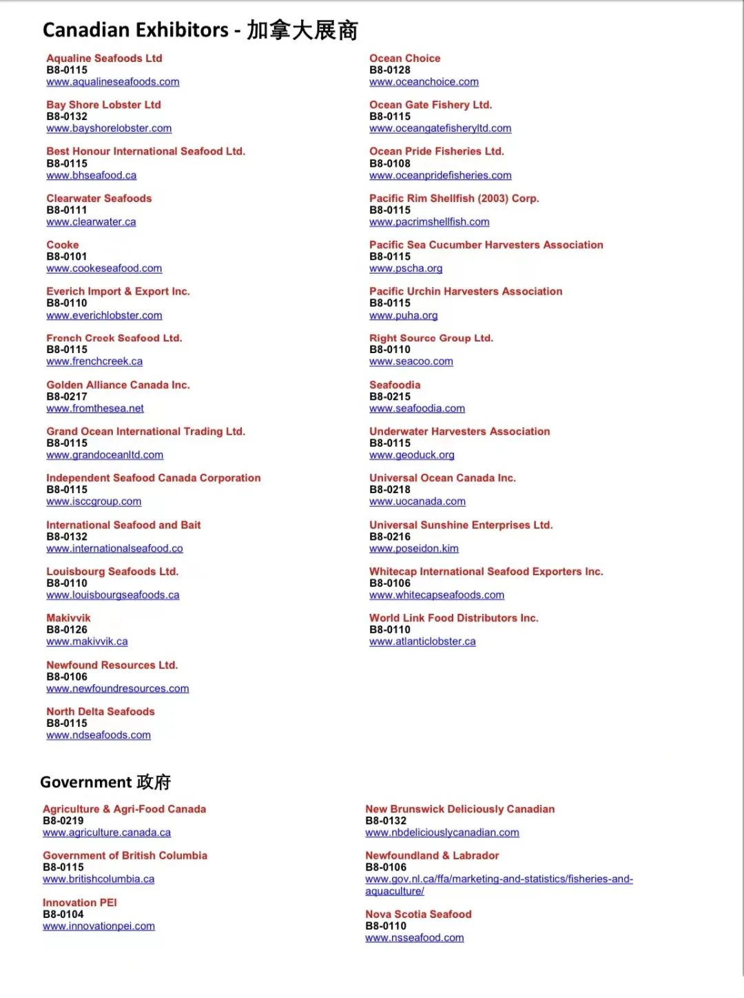 以上四家加拿大北极虾出口商都是本次参与青岛国际渔博会的参展商!