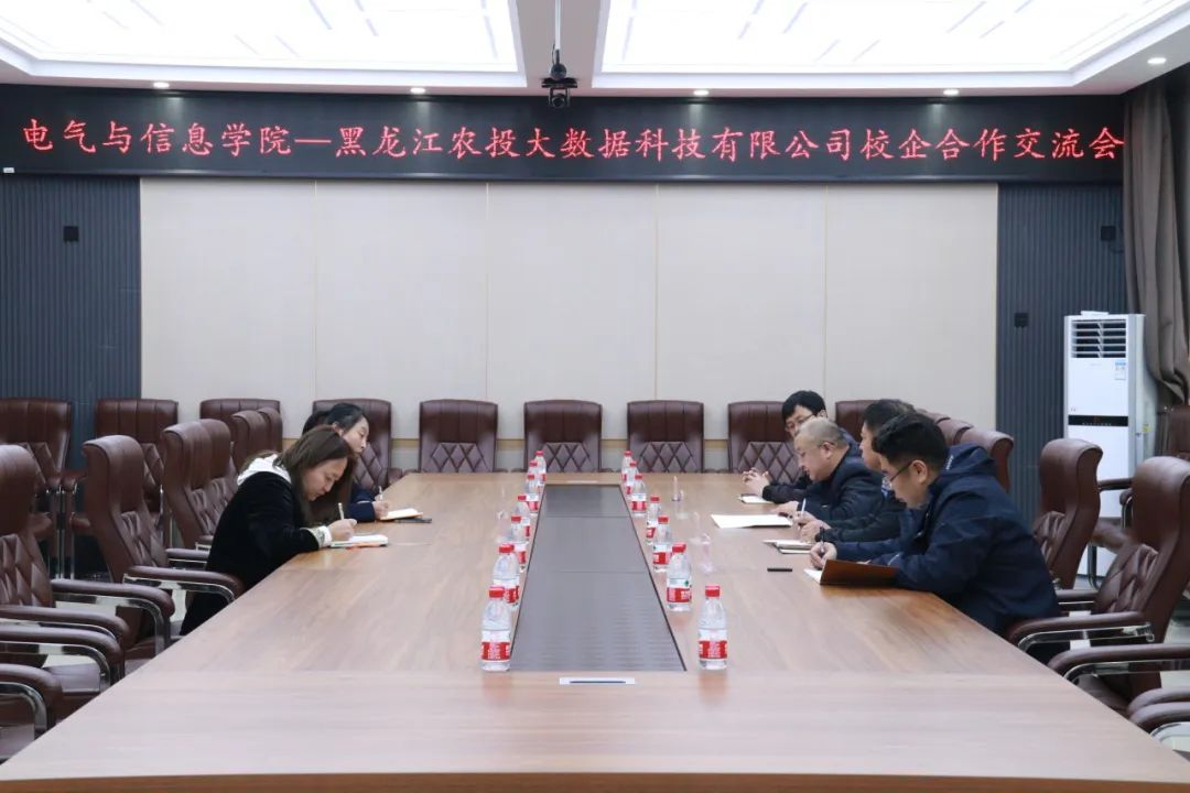 10月23日下午,黑龙江农投大数据科技有限公司副总经理曲艳、项目专员王晗来院洽谈校企合作,学院党委书记万庆生、党委副书记汪文斌、副院长李晓明、学工办主任杨森森参与接待,并参加了座谈会。