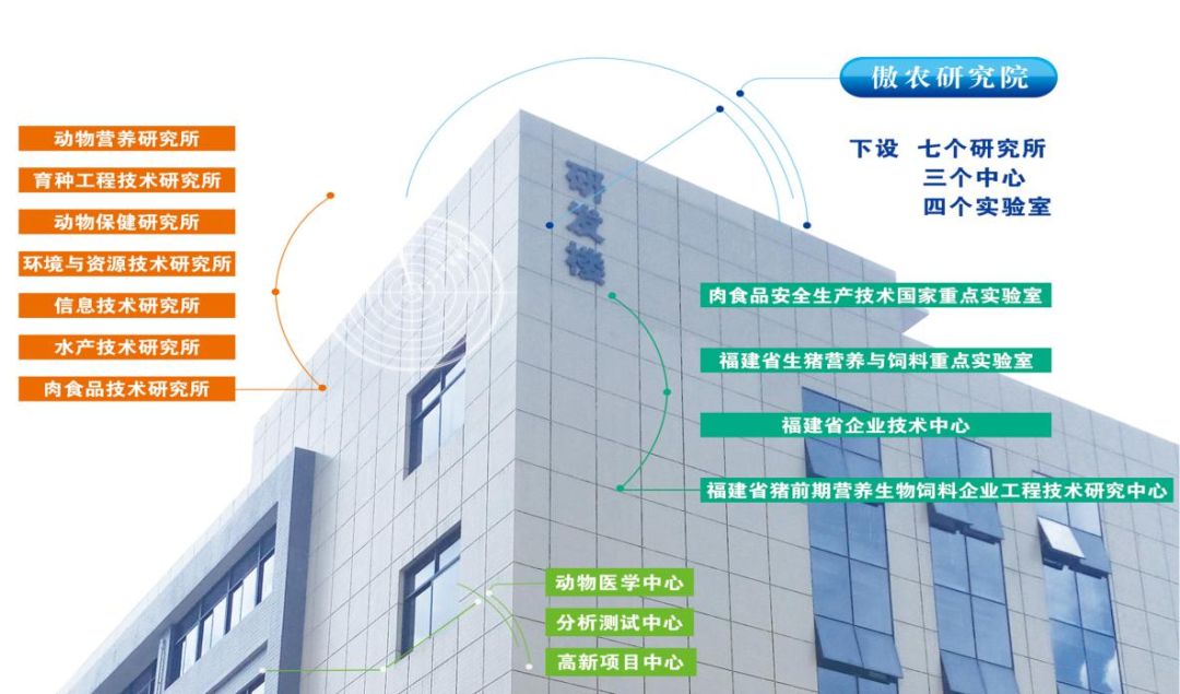傲农集团研究院成立于2016年9月,共下设7个研究所、3个中心以及4个实验室: