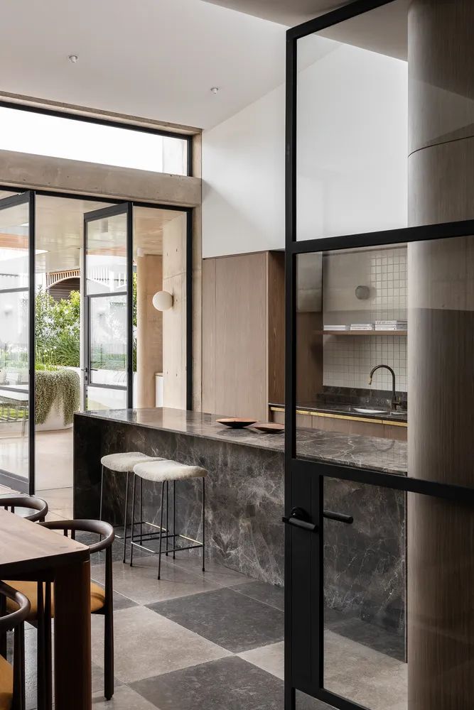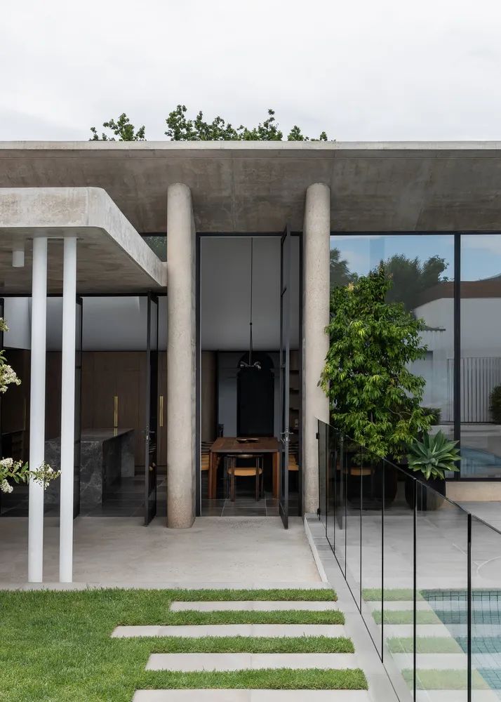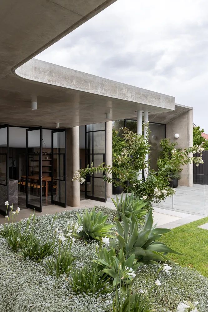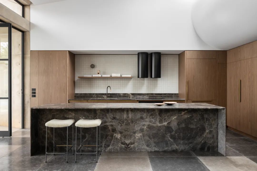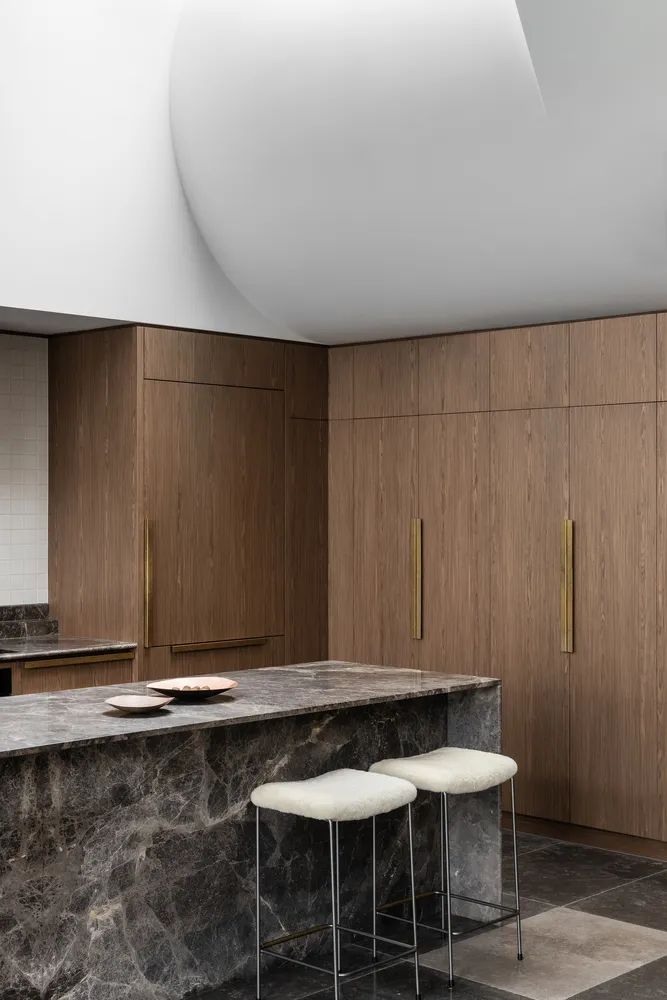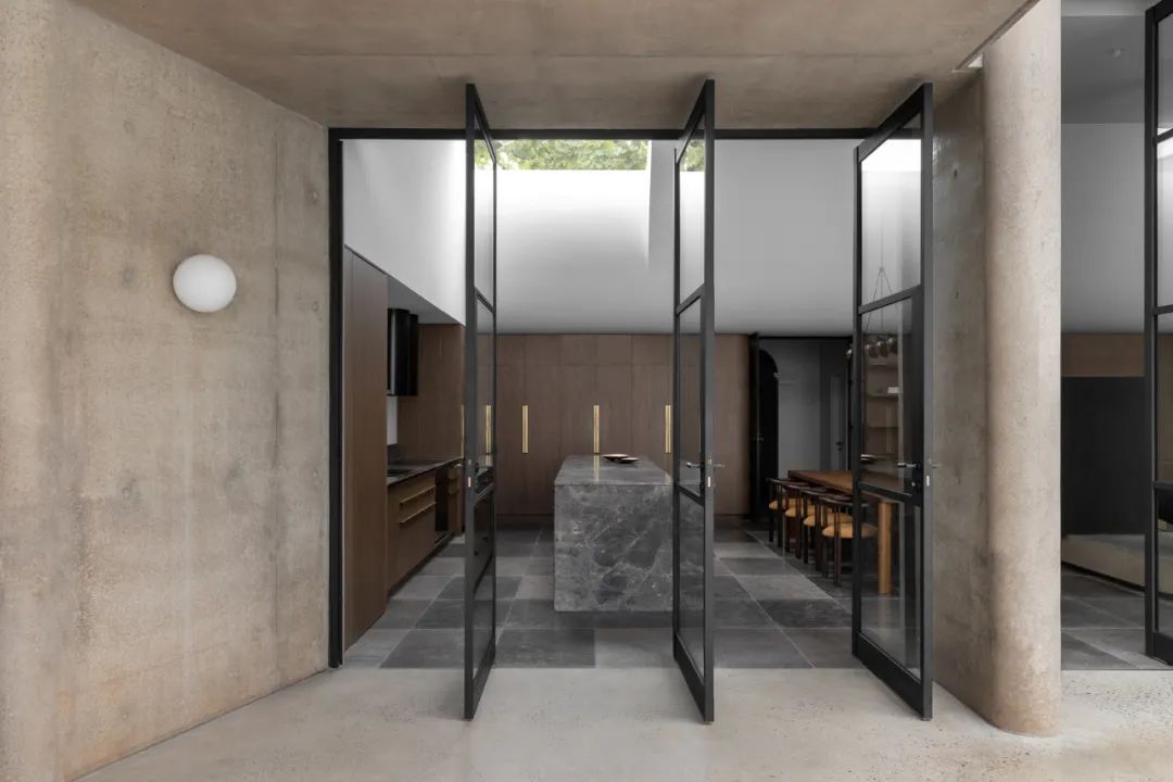 Restarting Time in the Name of Love这座1900年代初期的安妮女王别墅,以玫瑰花园之名成为新主人的府邸,空间设计在功能上表述着它的风骨和光辉。This early 1900s Queen Anne's villa, which became the new owner's residence under the name of the Rose Garden, features a series of spaces designed to be unique in function and expression, resulting in a building that is completely unexpected.中央走廊保留了住宅原有的空间布局,并引导人们走上一条探索之路。每个房间都探索了色彩和材料的用法,来唤起与其功能相近的感觉。The central corridor preserves the original spatial layout of the home and leads one down a path of exploration. Each room explores the use of color and materials to evoke a sense of proximity to its function.酒室通过使用丰富的勃艮第色来彰显空间语境,深浅饱和度的调整,大自然的绿色作为点缀,联动着空间调性的回应。The wine room highlights the spatial context through the use of rich burgundy colors, with shades of saturation adjusted and nature's greens used as accents, linking the spatial tonal response.The seasons change. Walk with the light.一个波浪形的造型成为原来的住宅和扩建部分之间的过渡,庆祝新旧的融合。弯曲的舱壁给人以沉重而柔软的感觉,是一个压缩和释放动作的范例。墙壁和天花板上的孔隙在天空和花园之间建立了联系,让居住者有机会见证花园的短暂性和季节性变化。An undulating form becomes the transition between the original home and the extension, celebrating the fusion of old and new. The curved bulkheads give the impression of heaviness and softness, an example of compression and release in action. Holes in the walls and ceiling create a link between the sky and the garden, giving the occupants the opportunity to witness the ephemeral and seasonal changes in the garden.A lovingly introspective and delicate门槛的雕塑感衔接了从一个空间到另一个空间的过渡,柔化了空间转换的维度。混凝土 "头锥 "升起以迎接正午的阳光,邀请温暖和阴影投射到室内,置身其间,就能感觉到时间、空间、光线、颜色和质量之间的相互作用——这些现象塑造了我们体验的起伏。The sculptural feel of the threshold articulates the transition from one space to another, softening the dimension of spatial transformation.The concrete "head cone" rises to meet the midday sun, inviting warmth and shadows to be cast into the interior, and to be in the room is to feel the interplay between time, space, light, color, and mass-phenomena that shape the ebb and flow of our experience.