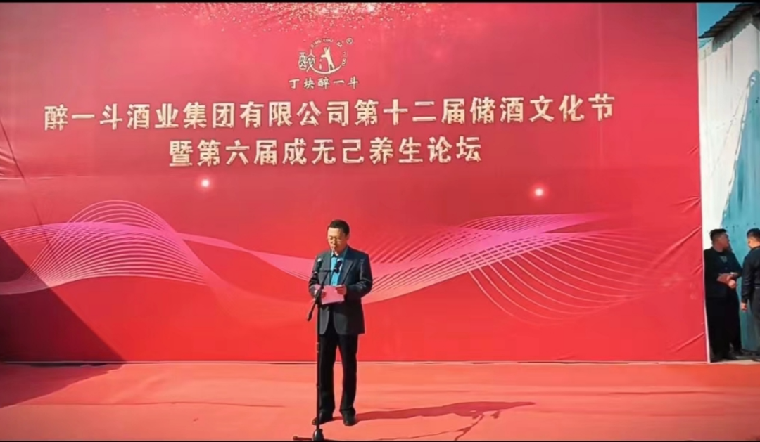 盛世和谐储美酒,生活富足享人生。我们的祖先历来就有储存美酒佳酿的习惯。储酒既是酿酒中一个不可或缺的传统工艺流程,也是源远流长的中国酒文化的一项核心内容。为继承和发扬历史悠久的中华民族“储酒”文化,多年来,我们每年都坚持原酒储存,并将储酒这一酿酒工艺中不可或缺的重要环节演绎成喜庆的文化活动和节日,目前,醉一斗酒业已存储年分原浆达400余吨,不仅传承、积淀和深厚着醉一斗酒文化,珍藏着醉一斗的醉美记忆和未来希望,而且让醉一斗的酒品更醇厚,更高贵,同时也通过这一文化平台,以酒会友、广交社会各届知名人士和朋友,让醉一斗香飘万里,走近万户千家。今天是中国传统的“九九”重阳节,我们坚持这一节日举办储酒文化节暨成无己养生论坛,也意寓着储存美酒就蕴含了富贵永久、财运永久、家运永久、人运永久、安康永久、友情永久的美好祝愿。在此请允许我借此机会恭祝大家永远兴旺发达、富贵吉祥、幸福美满,安康快乐!。
