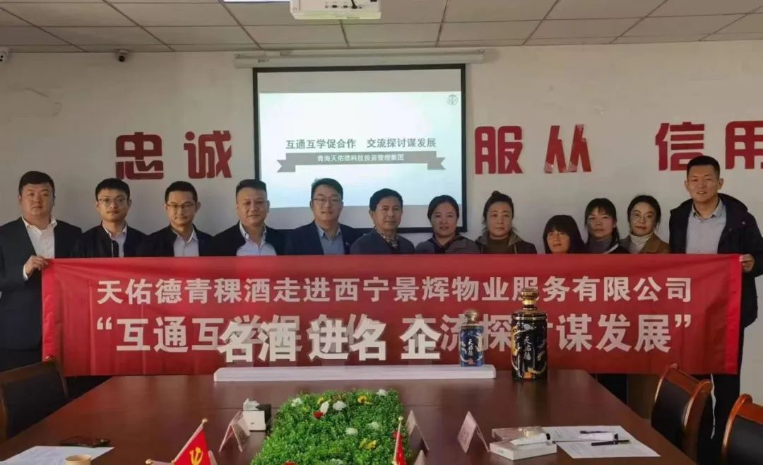 座谈会上,西宁景辉物业服务有限公司对天佑德青稞酒公司一行的到来表示热烈欢迎。西宁景辉物业服务有限公司党支部副书记张大国对公司主营业务做了详尽的讲解。天佑德青稞酒公司孙延奎对公司发展历程做了详细的讲述;双方围绕产品、市场、营销等层面的合作以及深度融合发展进行了深入交流和探讨。西宁景辉物业服务有限公司表示对我公司产品非常认可。