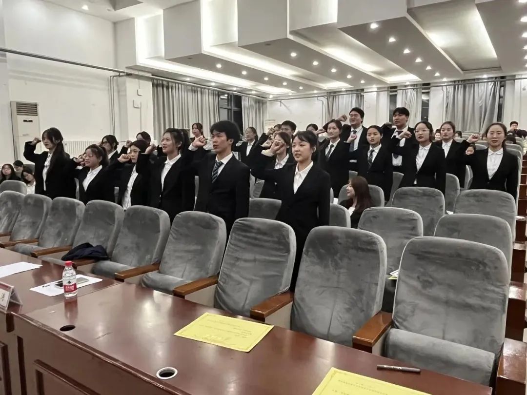 承前启后,永创光辉。第十三届学生干部代表谭昕妤向老师及同学们表示感谢,并希望新一届的学生干部能够紧握手中的接力棒,继承和发扬优良传统,为团学工作的稳定发展贡献力量。第十四届学生干部代表孟露表示,在接下来的一年里将会牢记自己的使命与责任,提高思想觉悟,发挥好模范带头作用,培养高尚品德和优良作风,提高工作效率,推动团学工作迈上新台阶。最后,本次大会在庄严的宣誓声中圆满结束,第十四届全体主要学生干部上台合影留念。