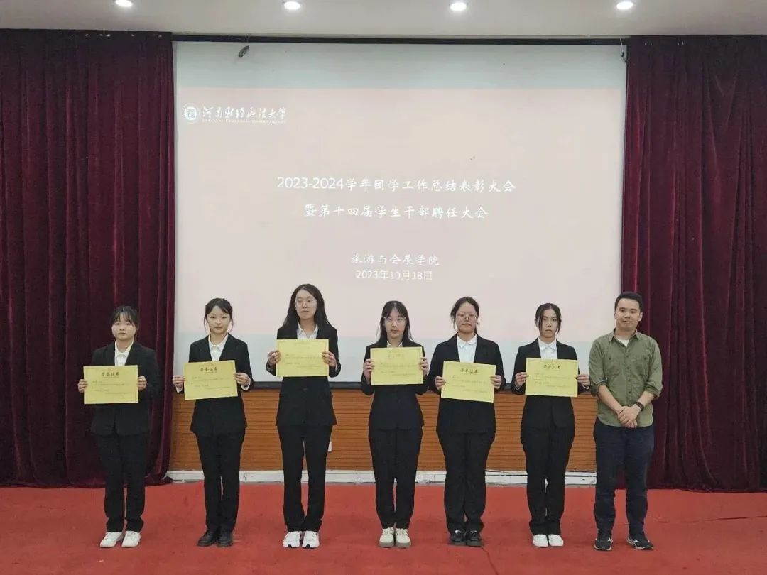 为进一步加强学生干部的能力培养,推动我院各部门的规范化工作,10月18日,旅游与会展学院于第一教学楼220报告厅召开2022-2023学年团学工作总结表彰大会暨第十四届学生干部聘任大会。学院团委书记蔡萌、团委副书记马超、兼职辅导员杨群涛出席,团学主要学生干部、受表彰同学及2021-2023级学生代表参加会议。会议由学生马文浩主持。
