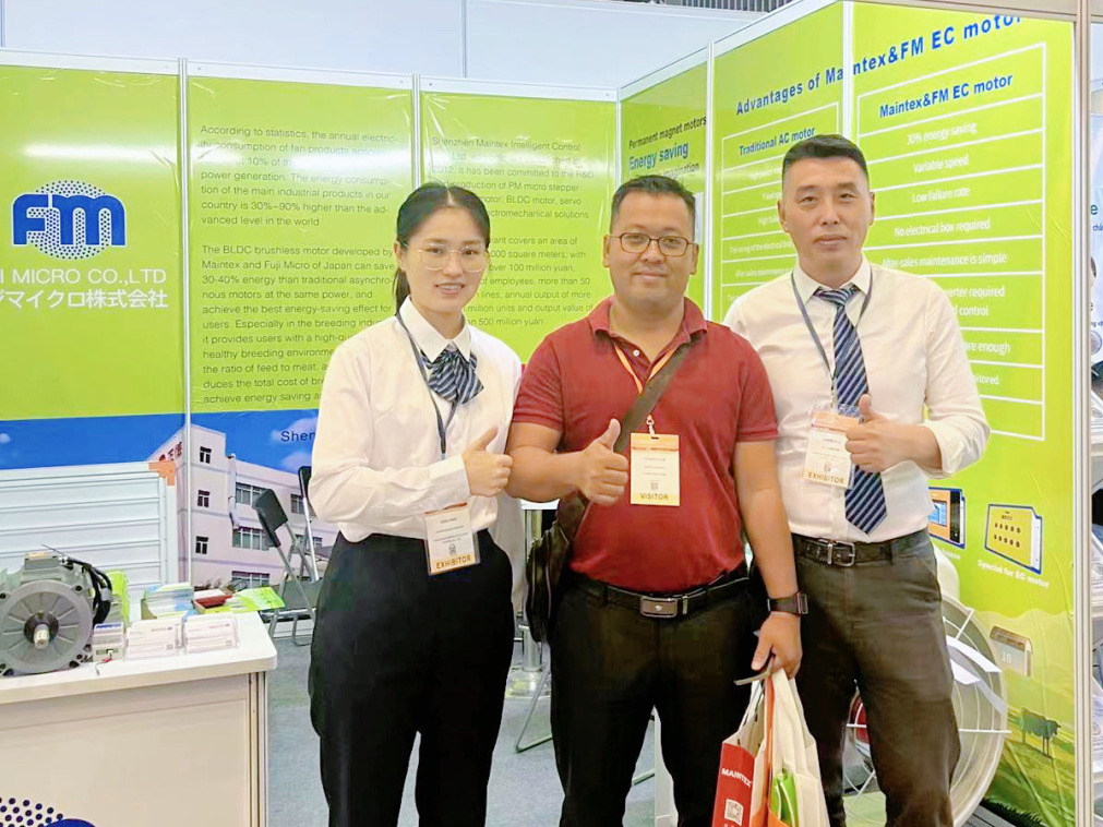 Energy Saving Beyond your Imagination10月11-13日,越南国际家禽畜牧展(VIETSTOCK 2023 EXPO&FORUM)在越南胡志明市西贡会展中心隆重举行。正德联合日本FM富士微研发的BLDC无刷电机亮相展会。On 11-13 October, Vietnam VIETSTOCK 2023 EXPO&FORUM was grandly held in Saigon Convention and Exhibition Centre, Ho Chi Minh City, Vietnam. The brushless EC motors developed by Maintex and Japan FM Fuji Micro displayed in the exhibition. 正德节能高效BLDC无刷电机一经展出,吸引众多行业人士关注。The energy-saving and high-efficiency brushless EC motors from Maintex attracted a lot of attention from the industry once they were exhibited.Communicate with Potential Customers, Expand Overseas Markets在会后,我们拜访了几家意向客户。通过面对面的沟通,让客户对正德及正德的产品有更清晰的了解。After the Expo, we visited several potential customers and made them got a clear understanding of Maintex’s products through face-to-face communication.深圳市正德智控股份有限公司2012年正式注册成立,一直致力于 EC电机、PM微型步进电机、伺服电机和机电一体化方案的研发与生产,产品广泛应用于畜牧,工业厂房,安防、家电、智能机器人和汽车行业等领域。Shenzhen Maintex Intelligent Control Co., Ltd., formally registered in 2012, has been committed to the R & D and production of EC motors, PM micro stepping motors, servo motors and mechatronics solutions. The products are widely used in animal husbandry, industrial plants, security, home appliances, intelligent robots and automotive industry and other fields.公司先后通过了ISO9001质量管理体系认证,以及IATF16949质量管理体系认证和ISO14001环境管理体系认证并且在国家技术质量监督局和电子工业部的产品质量等级抽查中,公司产品一直被评为优等品。Our company has passed ISO9001 quality management system certification, as well as IATF16949 quality management system certification and ISO14001 environmental management system certification. And our products have always been rated as excellent in the product quality grade spot inspections of the State Bureau of Technical Quality Supervision and the Ministry of Electronics Industry.正德BLDC无刷电机在同等效率下,比传统异步电机节能30%-40%,为用户提供最佳的节能效果。尤其在养殖行业,我们的无刷电机不仅能给用户提供优质健康的养殖环境,提高肉料比,而且能更大程度地降低养殖总成本,最终实现节约和节能的双重效果。Maintex's EC motor can provide users with the best energy-saving effect. At the same efficiency, it saves 30%-40% more energy consumption than traditional asynchronous motors. Especially in the breeding industry, our EC motors can not only provide users with a high-quality and healthy breeding environment, but also reduce the breeding cost to a greater extent. Ultimately achieving the dual effects of money and energy saving.
