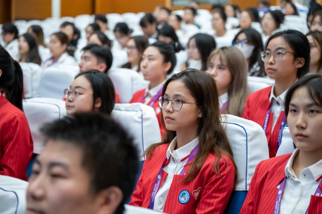 第五届中国国际进口博览会优秀志愿者、海洋文化与法律学院2021级研究生陈孜卓作为第五届进博会志愿者代表发言,她从一位志愿者学姐的角度给第六届的学弟学妹们讲述了自己的经历,提供了宝贵的志愿服务经验。