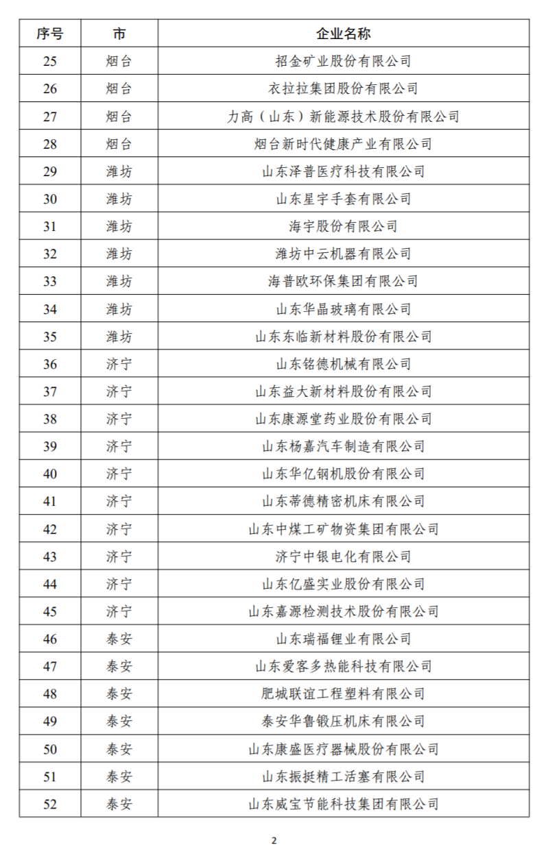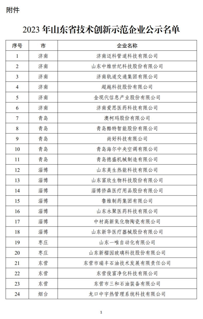 山东省技术创新示范企业名单