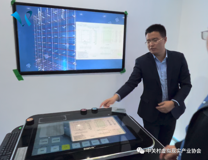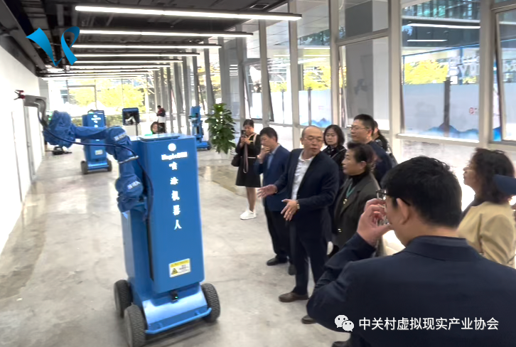 接下来,在展视网董事长张树坤的陪同下,园区领导和会员代表们参观了展视网数字展厅和智能建造机器人实验室。在数字展厅中,张树坤董事长详细地介绍了公司的发展历程、核心技术以及展视网在虚拟现实领域的发展策略和最新研究成果。