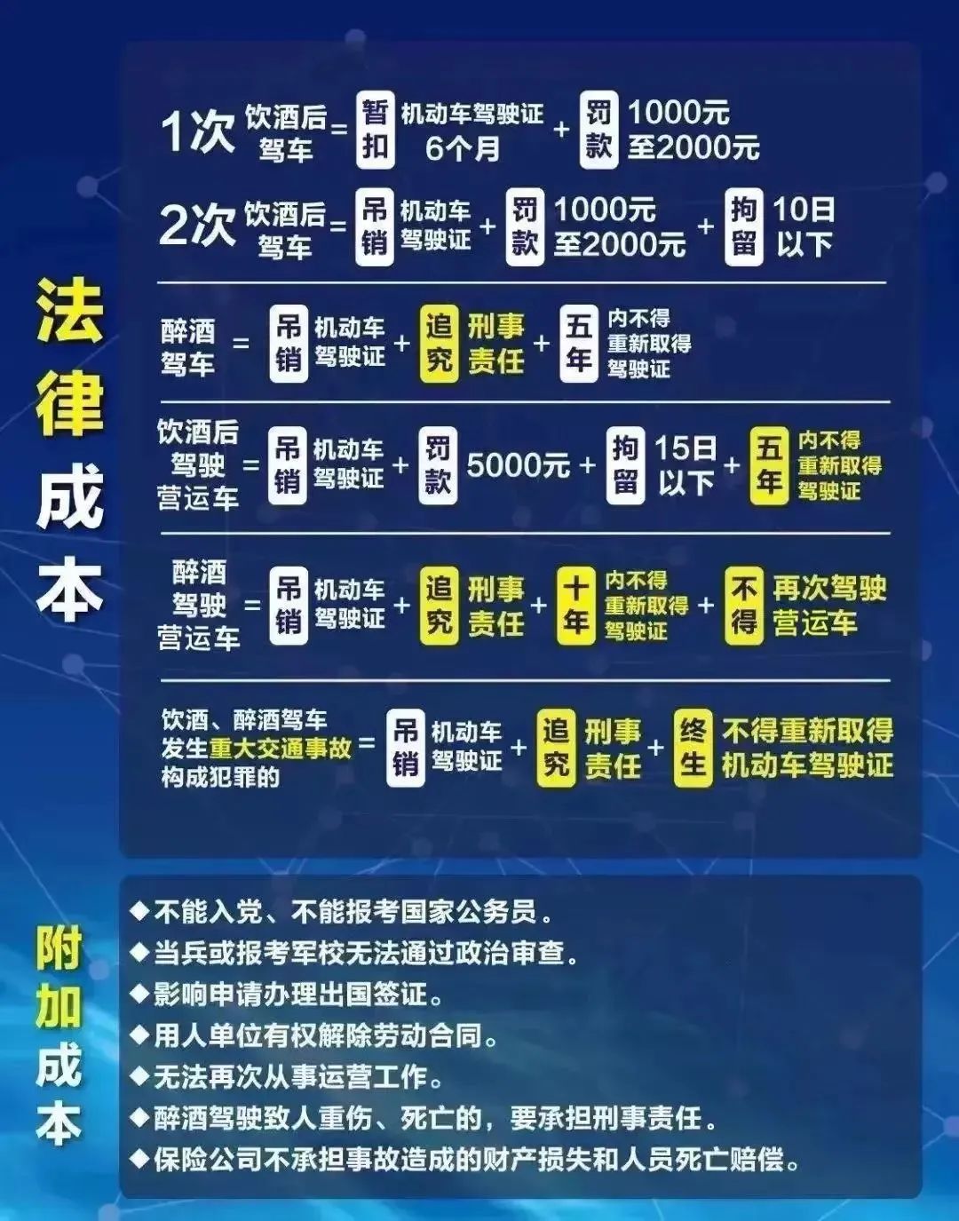 血液中酒精含量超过0.3%,会导致视力降低,在这种情况下,人已经不具备驾驶能力。如果酒精含量超过0.8%,驾驶人的视野就会缩小。至于醉酒的驾驶人,视野范围将进一步缩小,很难看清周边环境。