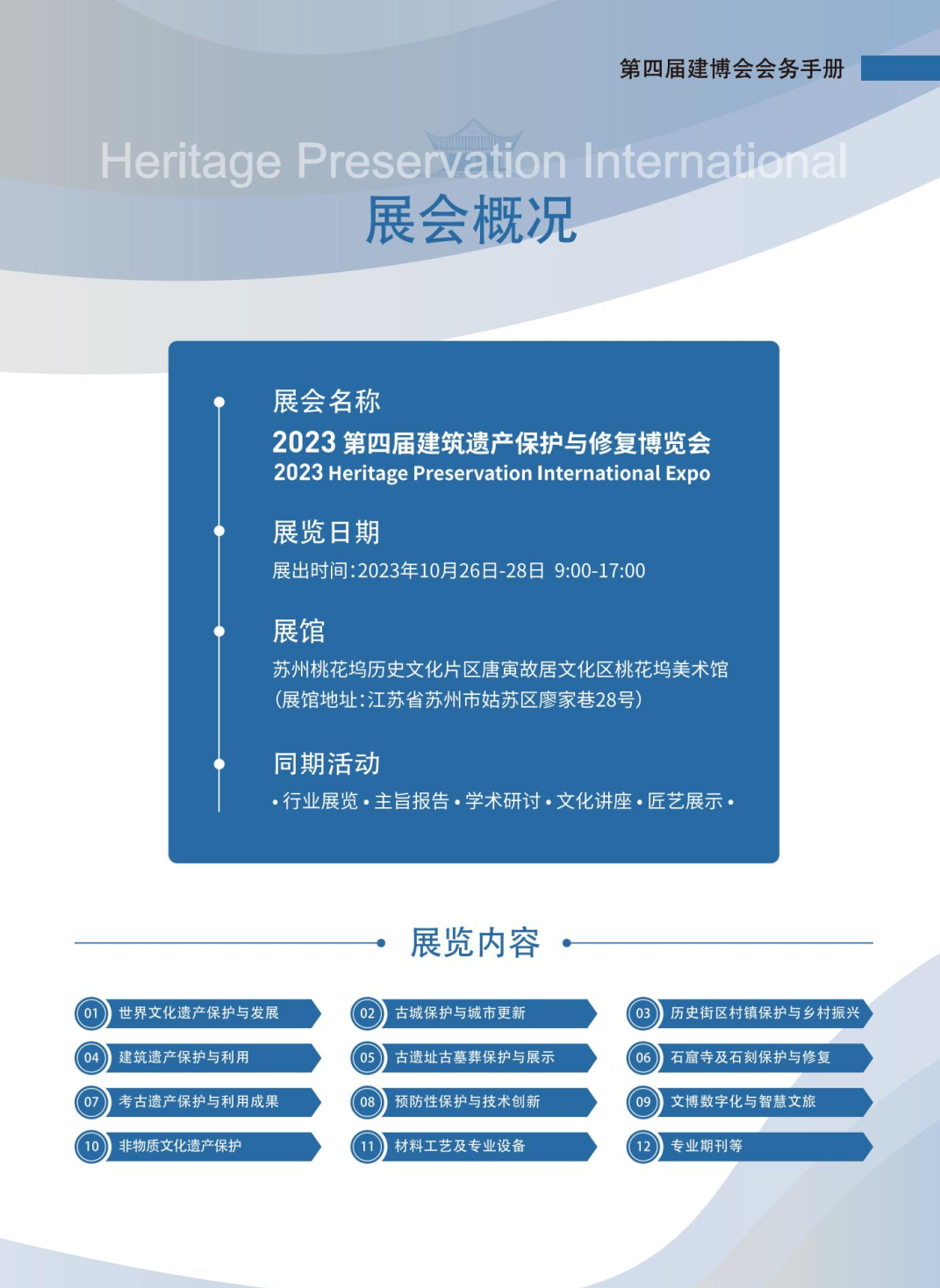 1、“保护传承·科技赋能·人民共享”——2023第四届建筑遗产保护与修复博览会将在苏州举办