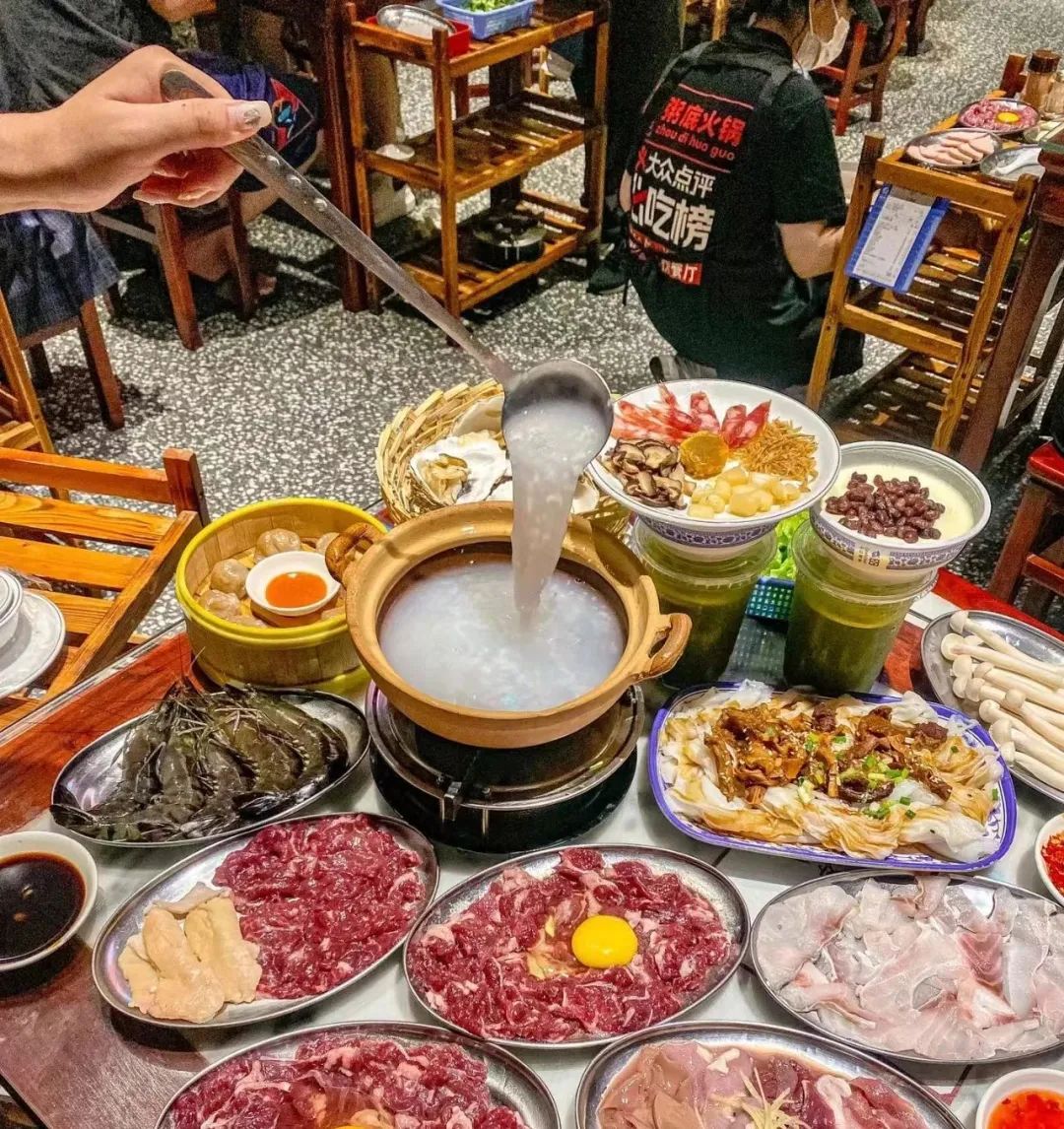 除了糟粕醋,广东还有粥底火锅早已走出顺德,在广州、深圳等珠三角地区的美食江湖占据了一席之地。在大众点评搜索粥底火锅,会发现在广东之外,北京、上海、郑州、等地都已有相关的门店。