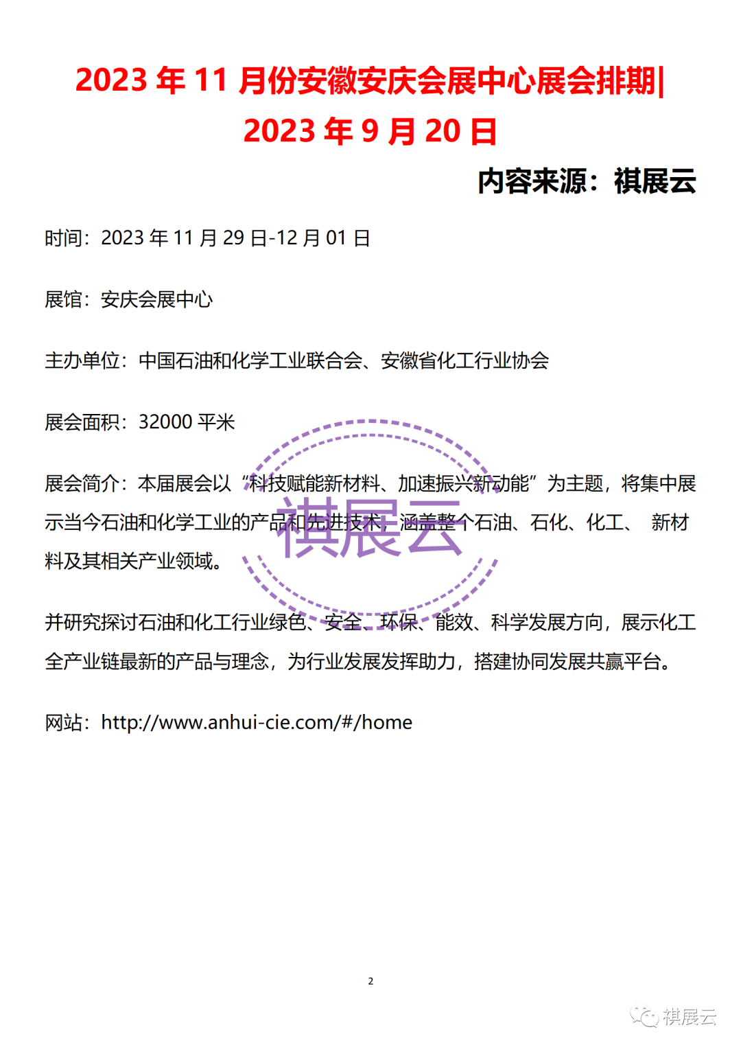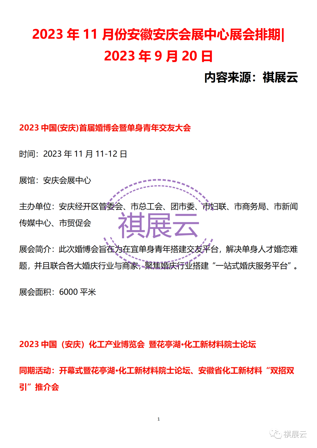 2023年11月份南京国际博览中心展会排期| 2023年9月20日