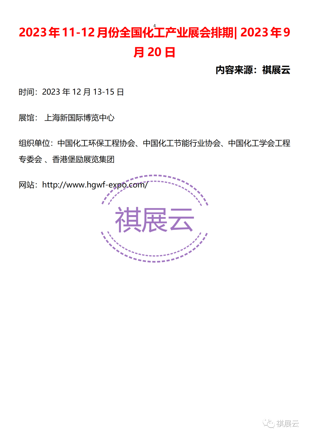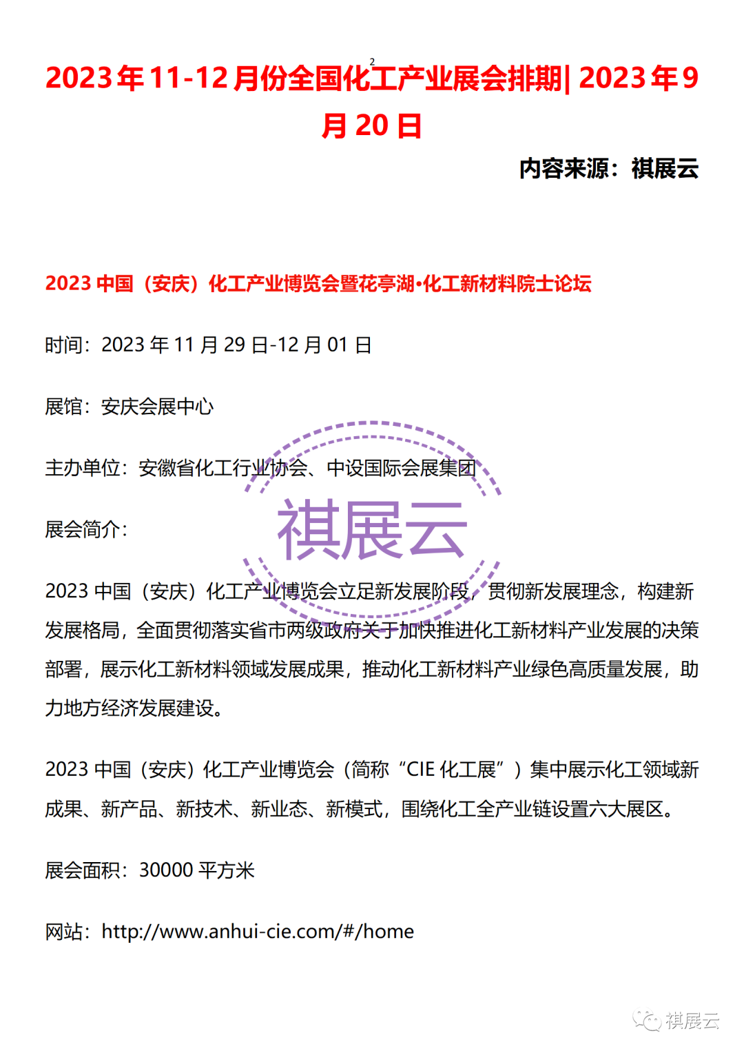 欢迎大家关注公众号“祺展云”,每日获取更多会展行业资讯。资料整理不易,如需转载,请联系工作人员转载注明出处。