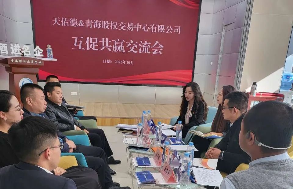 10月24日,天佑德青稞酒公司走进青海股权交易中心有限公司,开展以“互学互通促合作 交流探讨谋发展”为主题的企业交流活动。青海股权交易中心有限公司副总经理张宇,总经理助理王柏雯,市场部部长鸟泽樱,债券业务部部长李宁;天佑德青稞酒公司营销中心行政部部长赵国维,青海直销部部长张璐等领导参加此次活动。