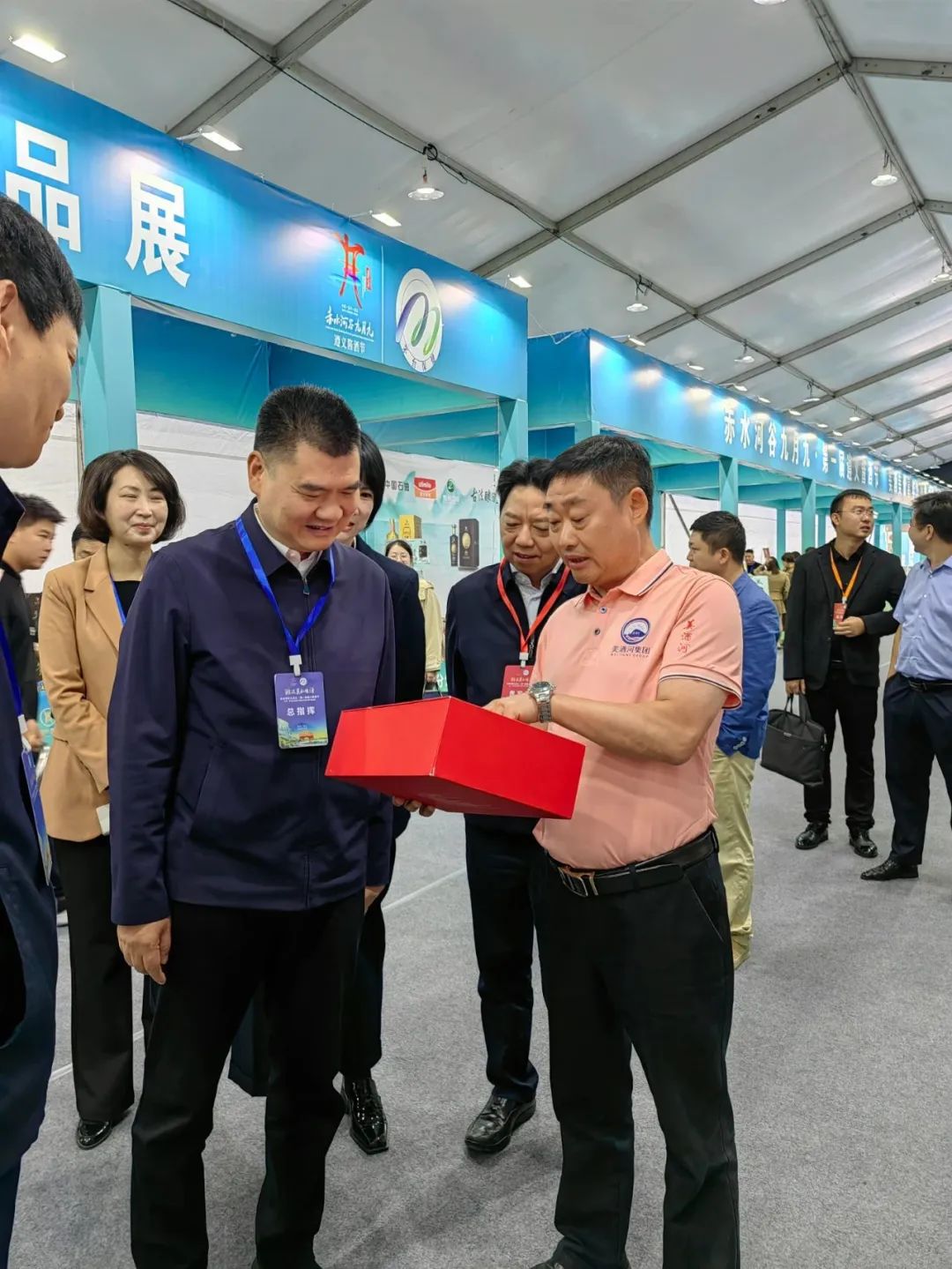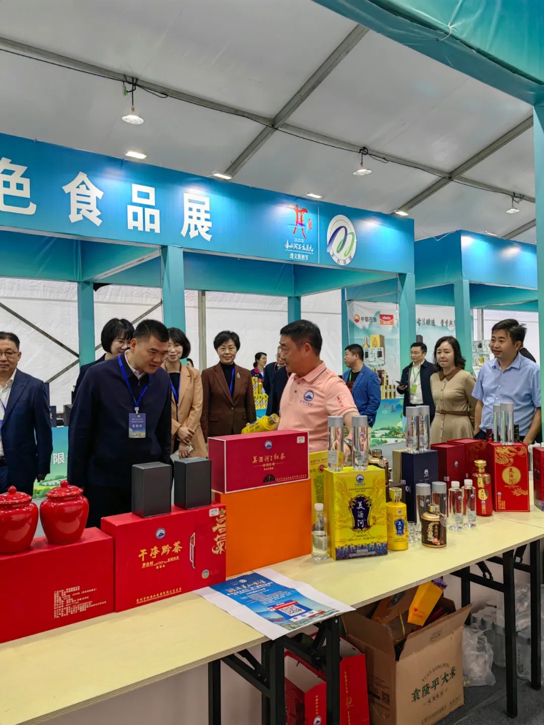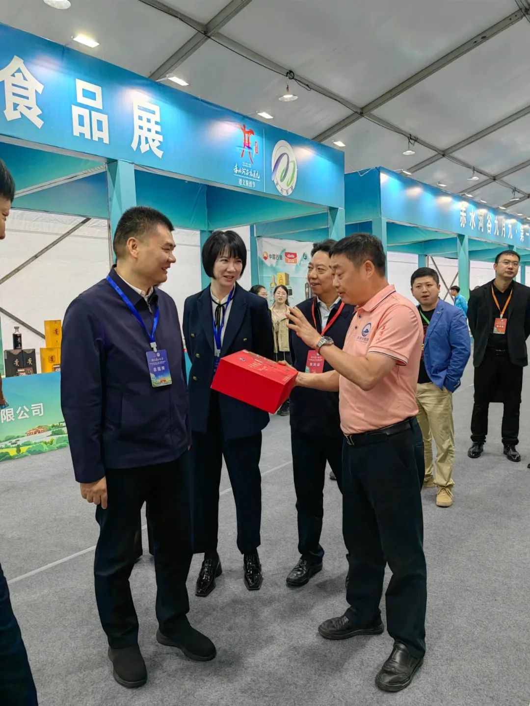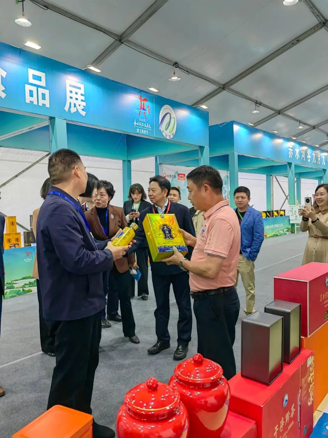 2023年10月21日下午遵义市委副书记王宏,遵义市人民政府副市长曹呜凤,遵义市新浦新区党工委书记何家琴,遵义市商务局局长张雪梅,新蒲新区人大工委副主任张朝伟,遵义交旅投集团副总经理吴健涛等领导一行到中国酱香白酒城遵义酱酒节美酒河集团展位参观指导,美酒河集团·赤水河集团·茅珍茶业集团·遵酒投集团董事长蔡波陪同领导一行参观,并向领导们介绍了巴拿马金奖品牌美酒河酒,干净黔茶品牌,美酒河矿泉水等品牌,得到了一致好评;蔡波董事长按照贵州省委、省政府提倡的干净黔茶、全球共享的理念来发展茶产业,投资茶业,得到了领导们的高度评价。