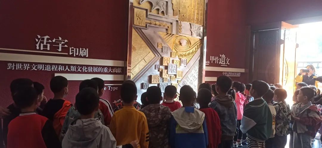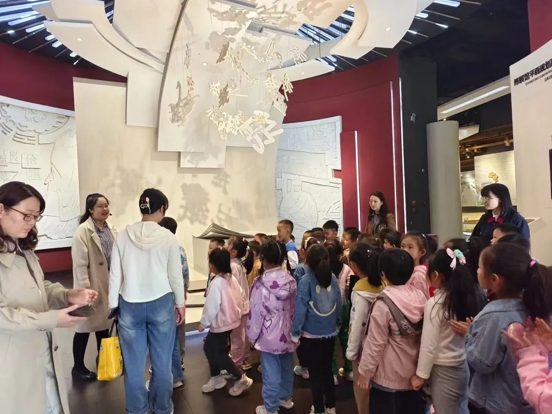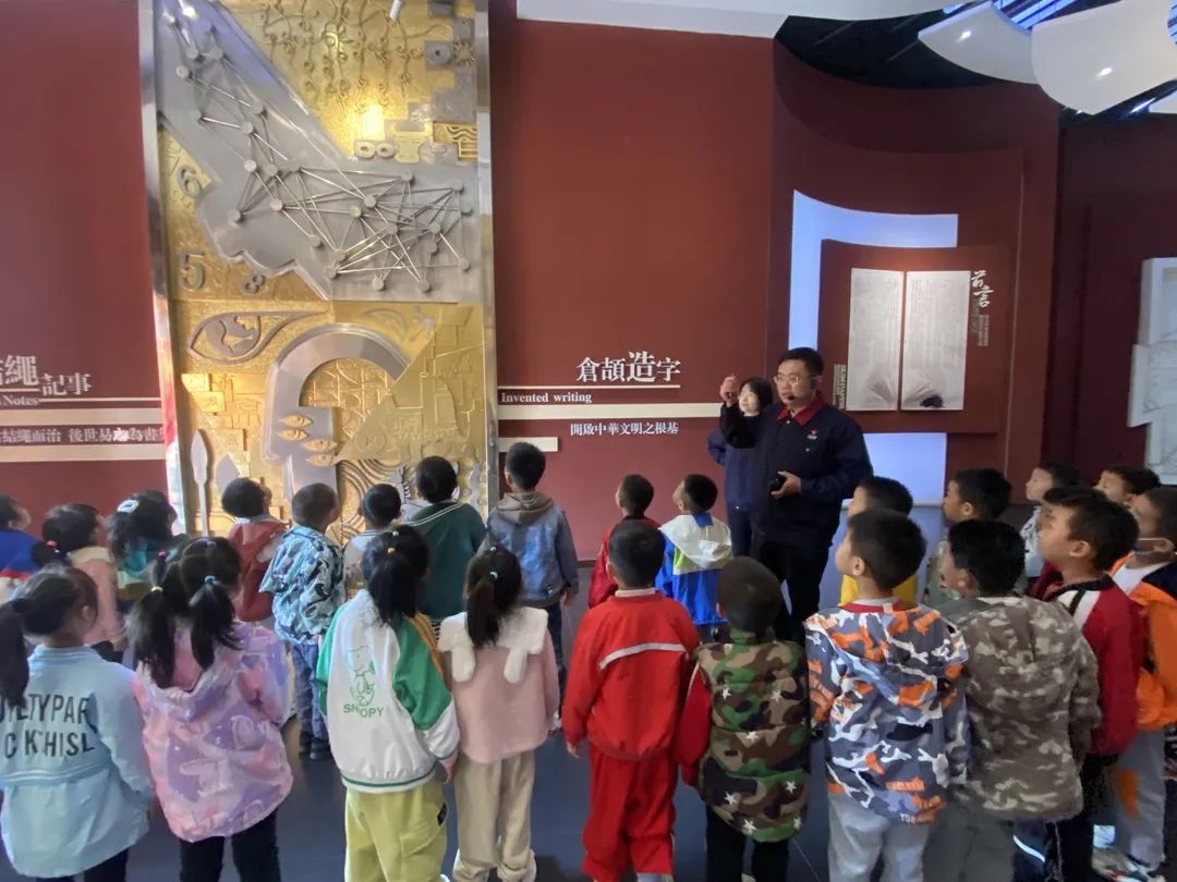 热情的工作人员、解说员迎接了我们,解说员从造字的历史讲起,孩子们入神的倾听着。黄帝时期的仓颉需要用结绳的方法记录事情,随着事情的增加,结绳记事的局限性慢慢显露了出来,于是他开始创造文字,通过大自然和人类活动的启示,他创造了最初的汉字。经过时间推移,商代时期的甲骨文已具备汉字构型的各种类型,并慢慢演变成现代文字供人们使用,奠定了中华文明之根基。