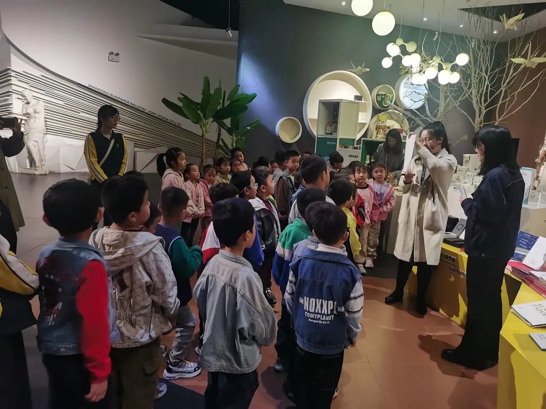 展示区内,解说员向孩子们抛出了一个问题:“纸可以用来做什么?”每个孩子根据自己的生活经验踊跃地回答问题,如:卫生纸、画纸、纸杯、包装盒等等。孩子们还见到了纸做的衣服,对纸的文化有了更深的认识和了解,每个参观流程,都让孩子们不时地发出感叹,好像发现了新大陆,充满了好奇。