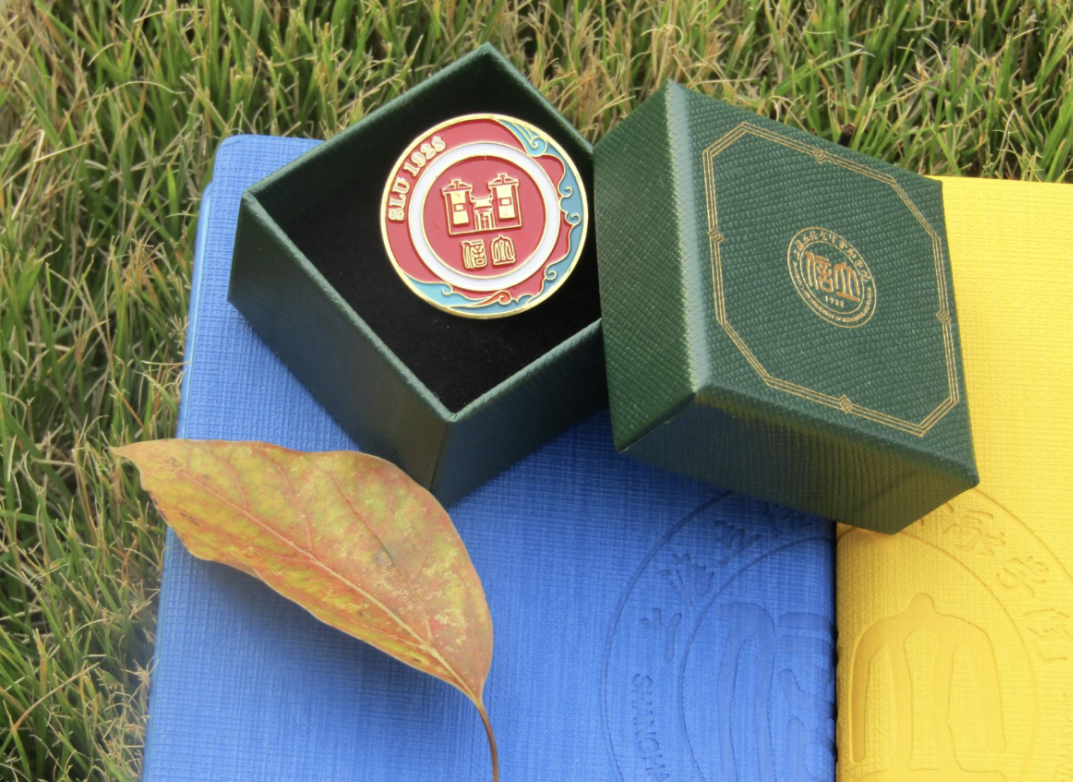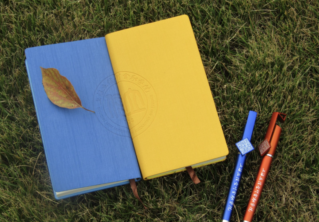 此外,笔记本上印有校徽,两本笔记本可以拼成一个完整的校徽,这也体现了合作、互助、交流、共享的理念,相信立信“小叶子”们会在志愿服务中互相帮助,交流合作!