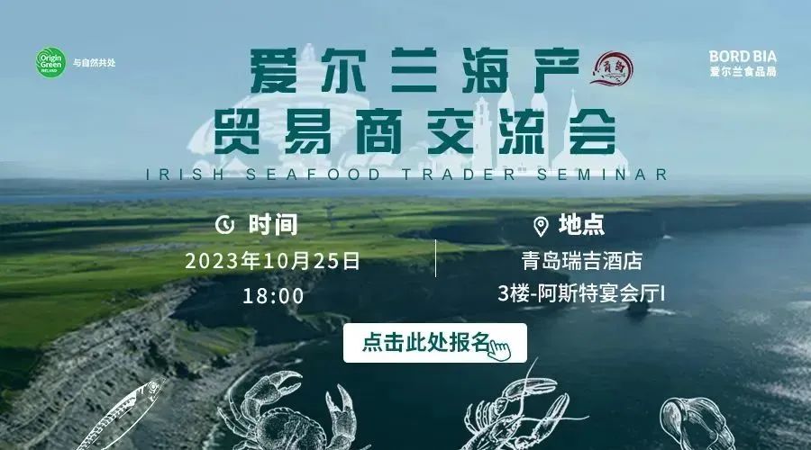 10月25日,爱尔兰食品局将在青岛瑞吉酒店举办爱尔兰海产贸易商交流会,届时将会与国内行业伙伴、爱尔兰企业代表就爱尔兰渔业标准、海产特点、对华贸易、中国市场行业现状及消费行为趋势、餐饮业现状等内容进行深度的交流和讨论。晚宴上,还有大厨以爱尔兰海产为食材,量身定制饕餮盛宴,邀请嘉宾们一起品味属于爱尔兰的独特鲜美。