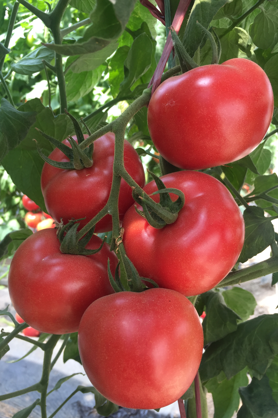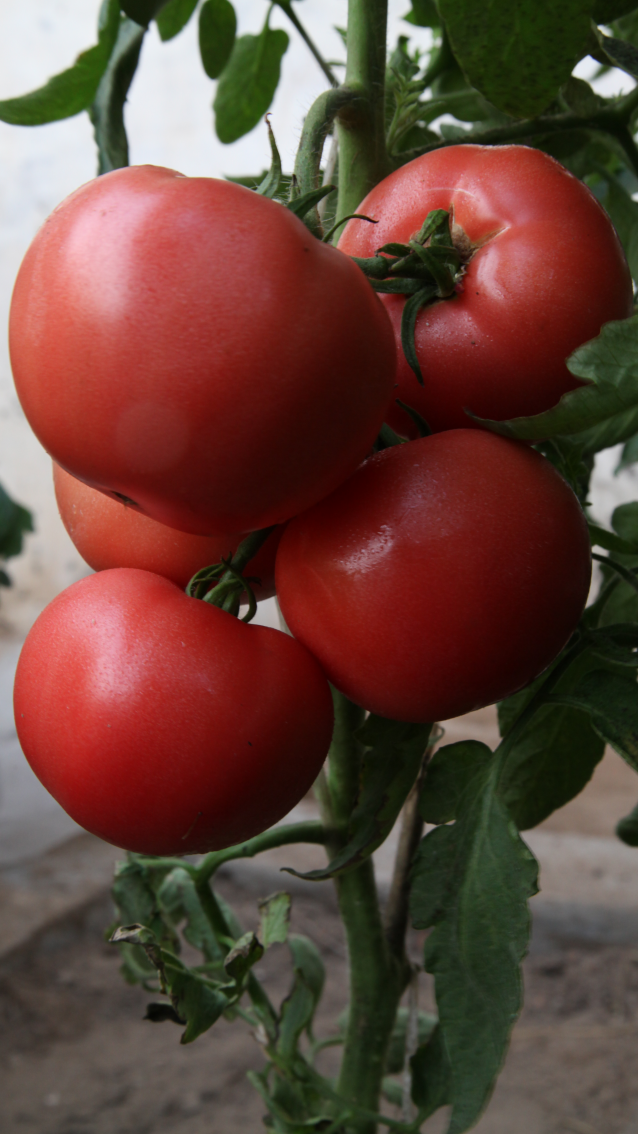 河南农业职业学院专家培育杂交一代,中早熟,抗TY。无限生长类型,生长势强,每花序着花 4~6 朵,易坐果,中果型,成熟果粉红色,近圆形,平均单果重 150-180 克。