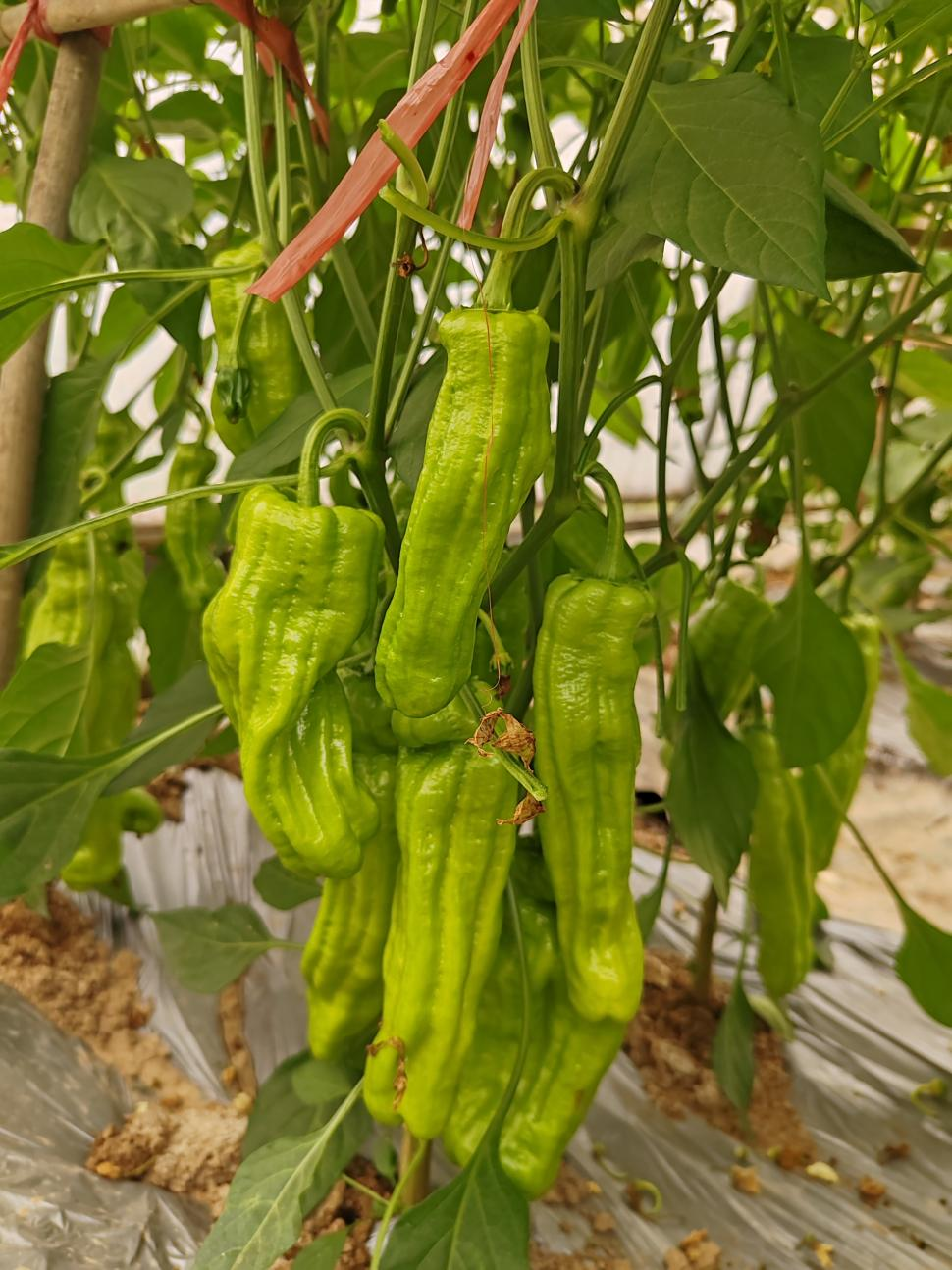 濮阳市农林科学院培育鲜食杂交种。早熟大果黄皮椒,果长28~32厘米,粗3.5~4.5厘米,单果重100~120克,麻面,果色黄绿色有光泽,皮薄无渣,肉质脆嫩,口感好,商品性好;长势健壮,分枝能力强,连续座果能力强,适宜早春及秋延后保护地栽培。