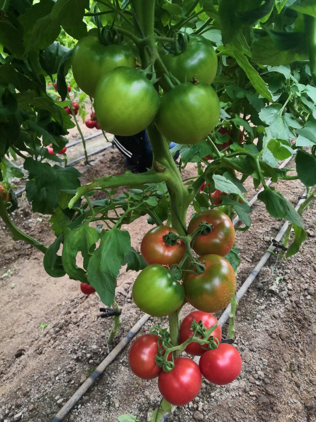 郑州市农业科技研究院选育水果番茄新品种,无限生长类型,早熟,生长势强,叶色深绿,果实圆形,平均单果重120~150 g,幼果有深绿色果肩,果实完全成熟后为粉红色,有光泽。口感酸甜、清香。抗TYLCV、线虫病,综合抗性强。适合河南、山东、宁夏、内蒙、辽宁等北方地区早春塑料大棚和越冬温室种植。