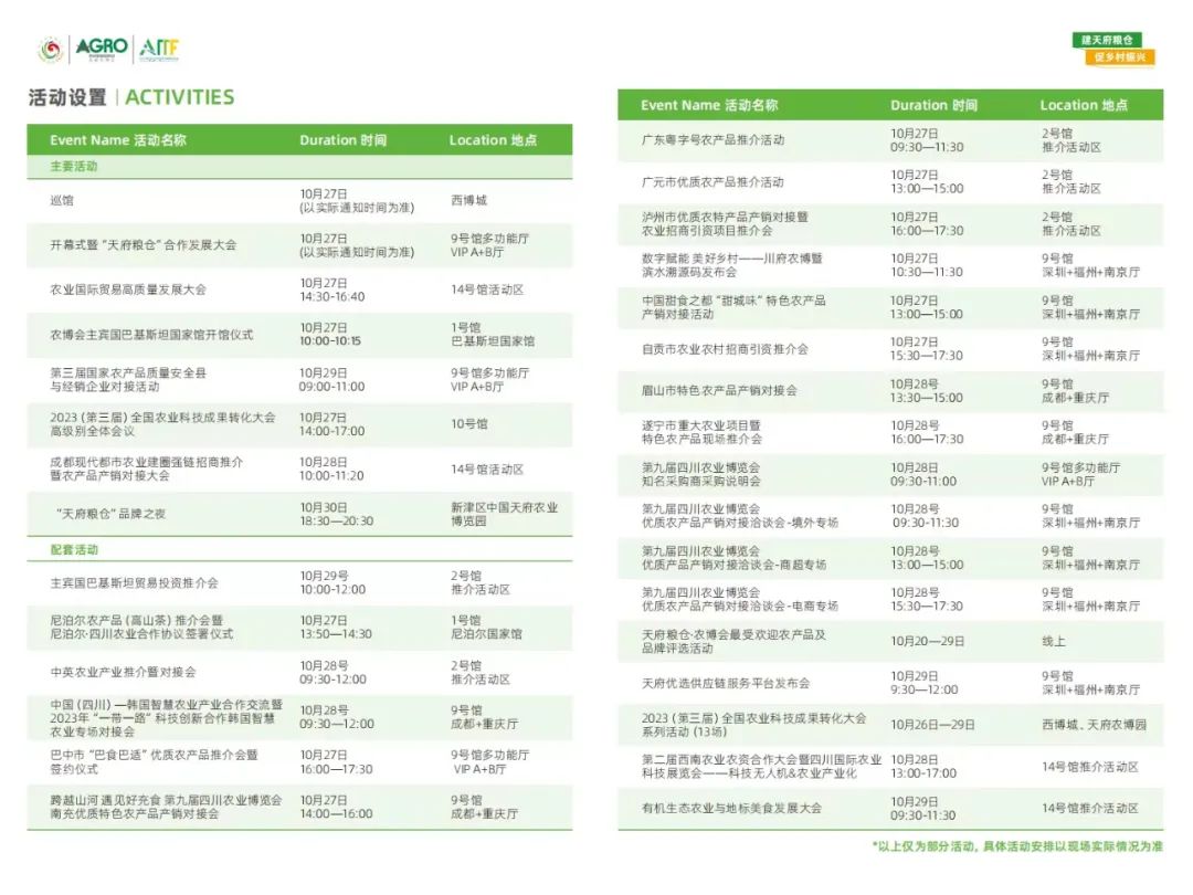 本届农博会在西博城展区和农博园展区分别举办一系列主要活动和配套活动
