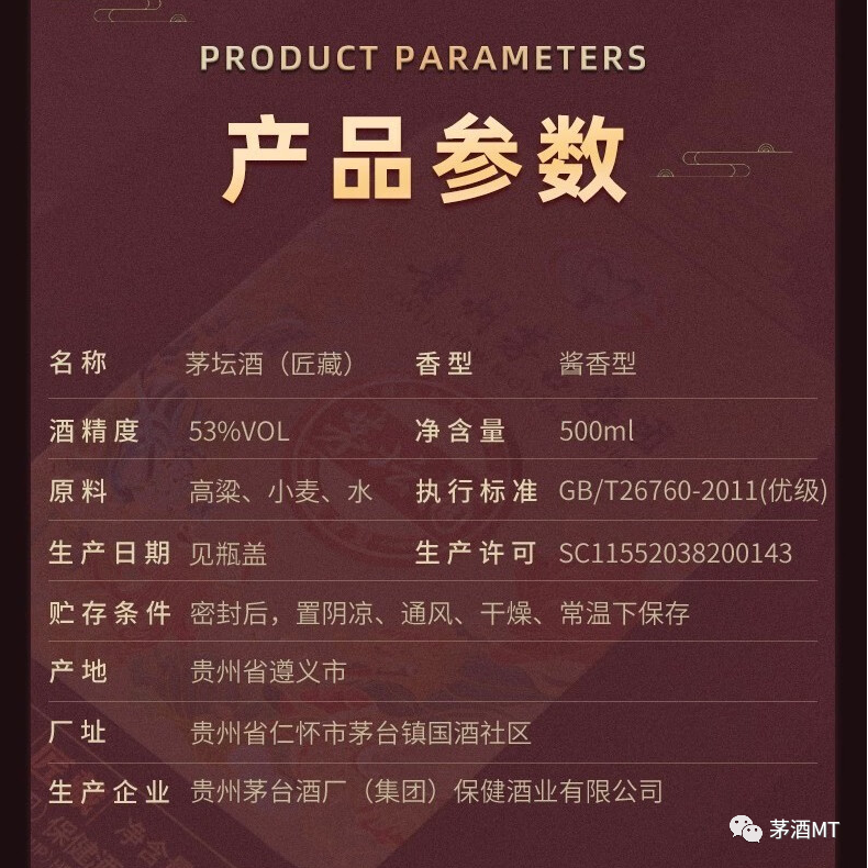 贵州茅台集团的“茅坛酒·M6”,源自北纬27度茅台镇品质酿酒核心地区,手工坤沙,精选原料。以茅台镇红缨子高粱和小麦为原料,取赤水河山泉水为水源,利用得天独厚最适宜的微生物酿酒环境,严格按照茅台酱香酒的传统酿造工艺,端午踩曲,重阳下沙,每一瓶酱酒都要经历一年周期,两次投料,九次蒸煮,八次发酵,七次取酒,经典窖藏,精心勾兑而成,具有酱香味十足、酒体醇厚、入口回甘、柔和细腻,空杯留香持久之独特风格,每年限量供应。