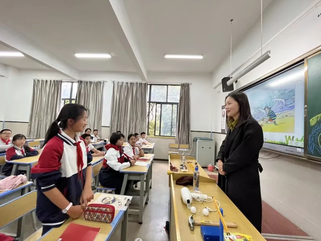 吴老师的课堂气氛热烈,孩子们学习热情高涨,采取问题引领,兴趣导向,启发式的教学模式,调动学生的积极性,在孩子们的心中种下名为“物理”的种子。
