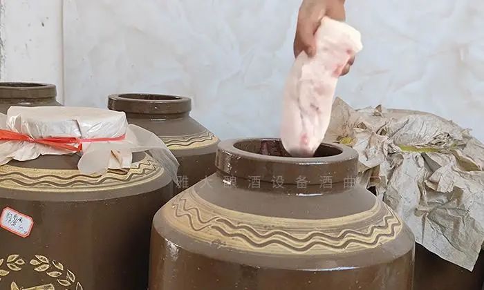 有人说,肥肉那么大块,很难与酒完全融合,肥肉可能再吸附完酒里的杂质后,就沉没到酒坛底部了,玉冰烧酿成之后,经过过滤,里面的肥肉也会被过滤出来,然后和废酒一起丢掉。