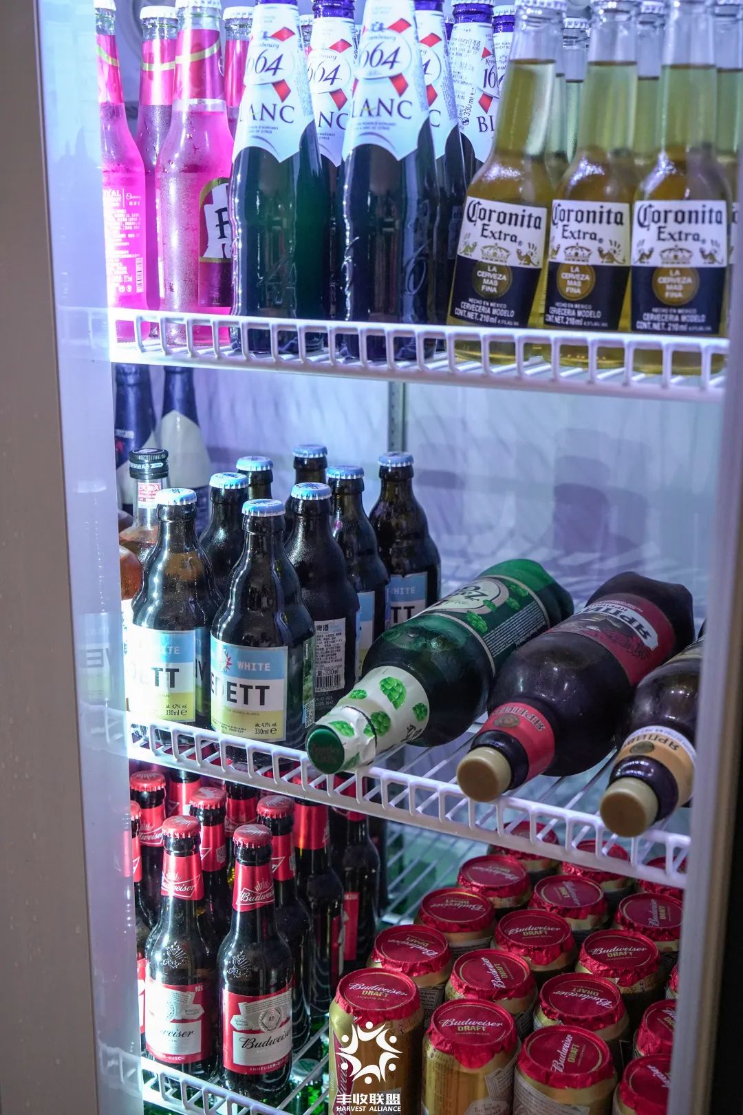 店内的冰柜里,放着各种各样的精酿啤酒和洋酒,比如:智美、帝磨栏风车、粉象、迷失海岸等等。