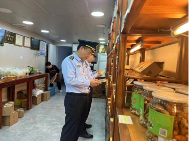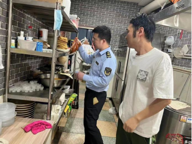 在餐饮店里,工作人员进入餐饮店的后厨进行巡查,发现后厨整洁有序,餐具清洁干净,还进行了二次高温消毒。工作人员还重点检查了餐饮店食品仓库的食品储存、食品的标签标识以及预制菜的质量情况。检查结果发现基本符合要求。