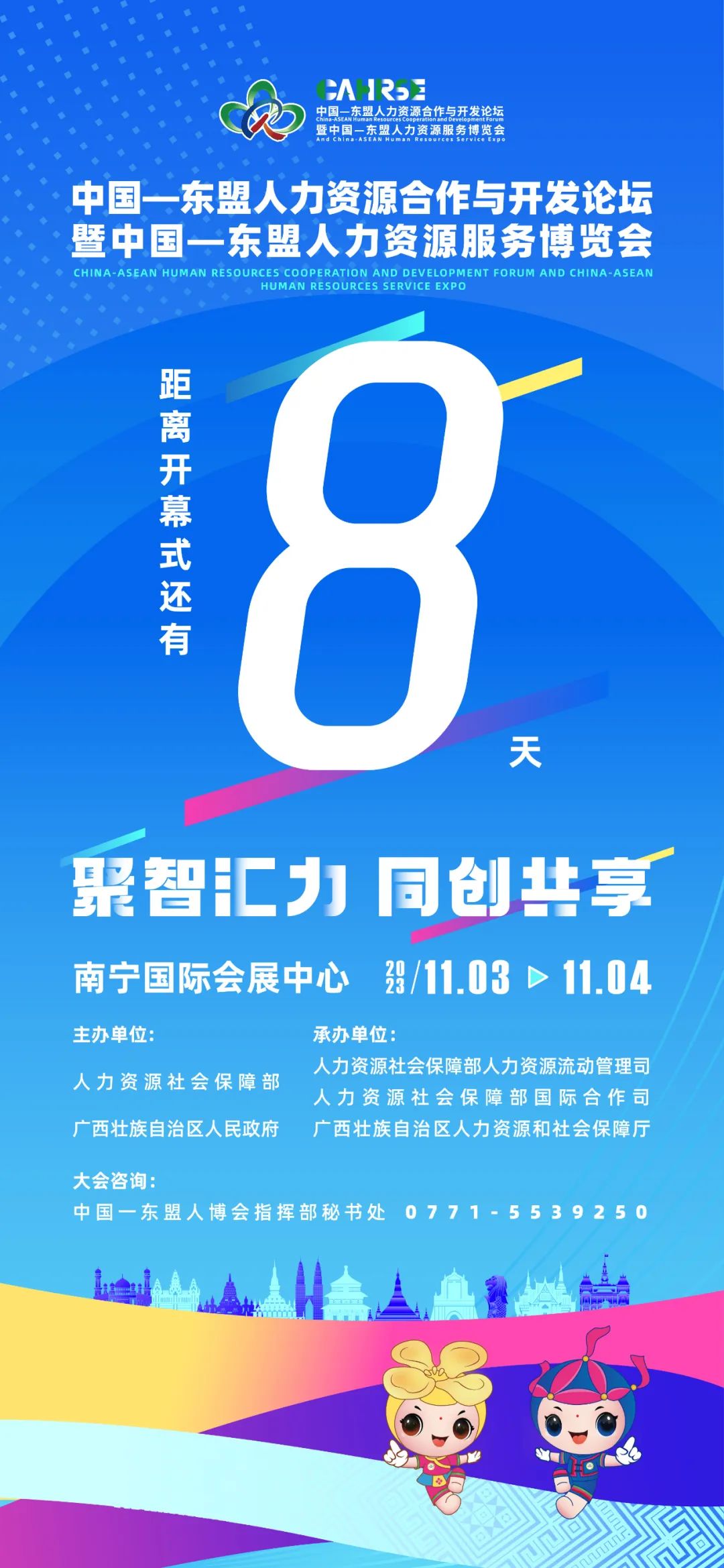 由人力资源社会保障部和广西壮族自治区人民政府主办,人力资源社会保障部人力资源流动管理司、人力资源社会保障部国际合作司、广西壮族自治区人力资源和社会保障厅承办,以“聚智汇力 同创共享”为主题的中国—东盟人力资源合作与开发论坛暨中国—东盟人力资源服务博览会(以下简称“人博会”),将于2023年11月3日至4日在广西南宁国际会展中心举办,本届人博会已作为高层论坛纳入第20届中国—东盟博览会框架。