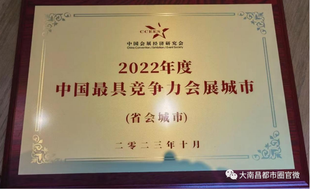 10月26日,2023中国会展城市产业合作大会暨会展城市竞争力指数发布会在四川成都召开。南昌再荣获“2022年度中国最具竞争力会展城市(省会城市)”殊荣。