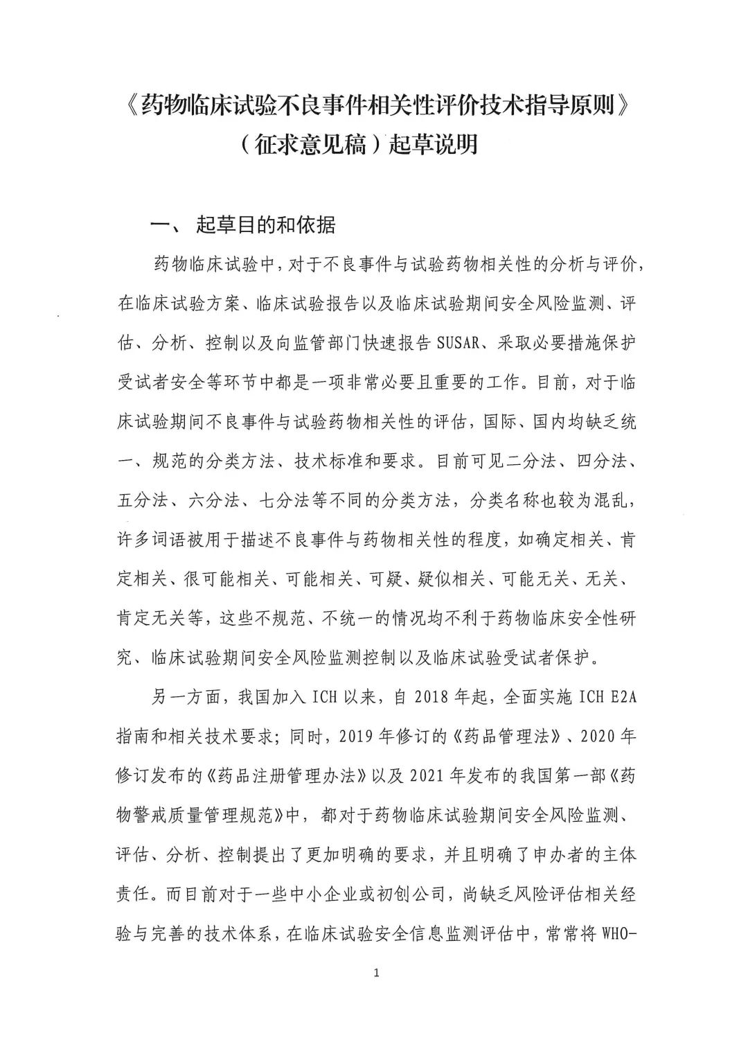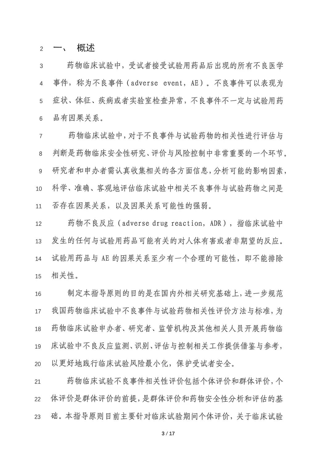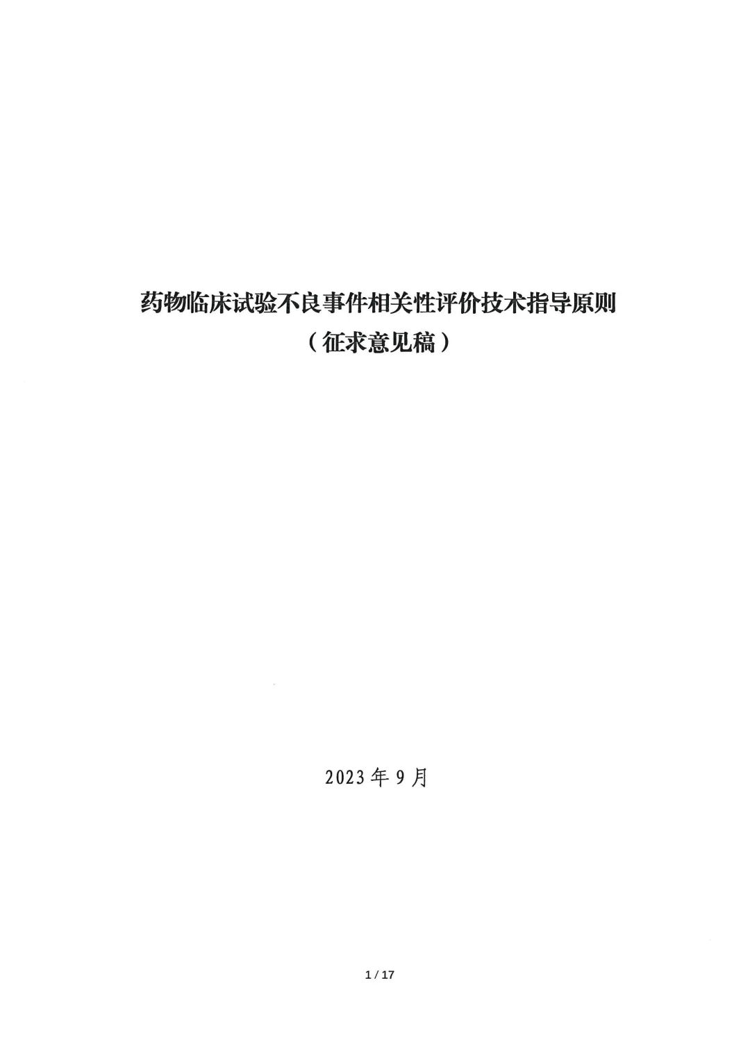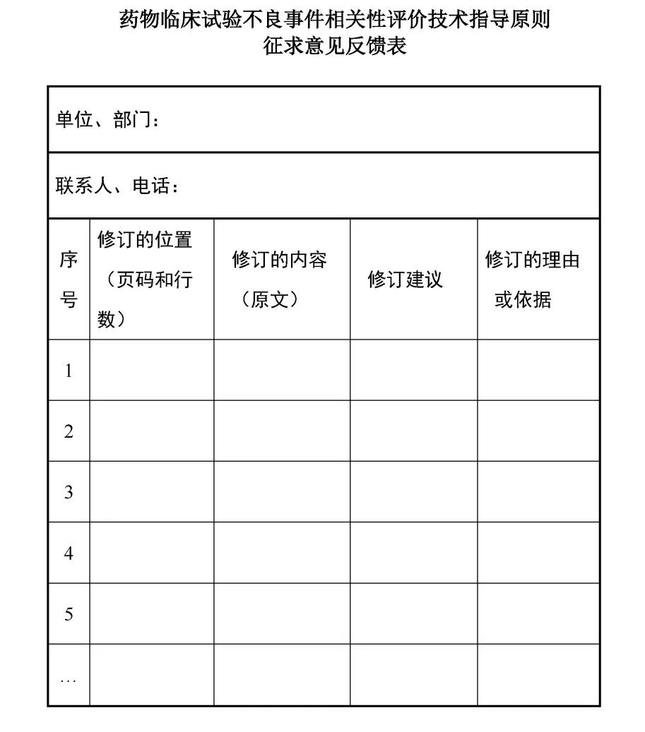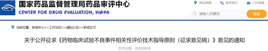 关于公开征求《药物临床试验不良事件相关性评价技术指导原则(征求意见稿)》意见的通知
